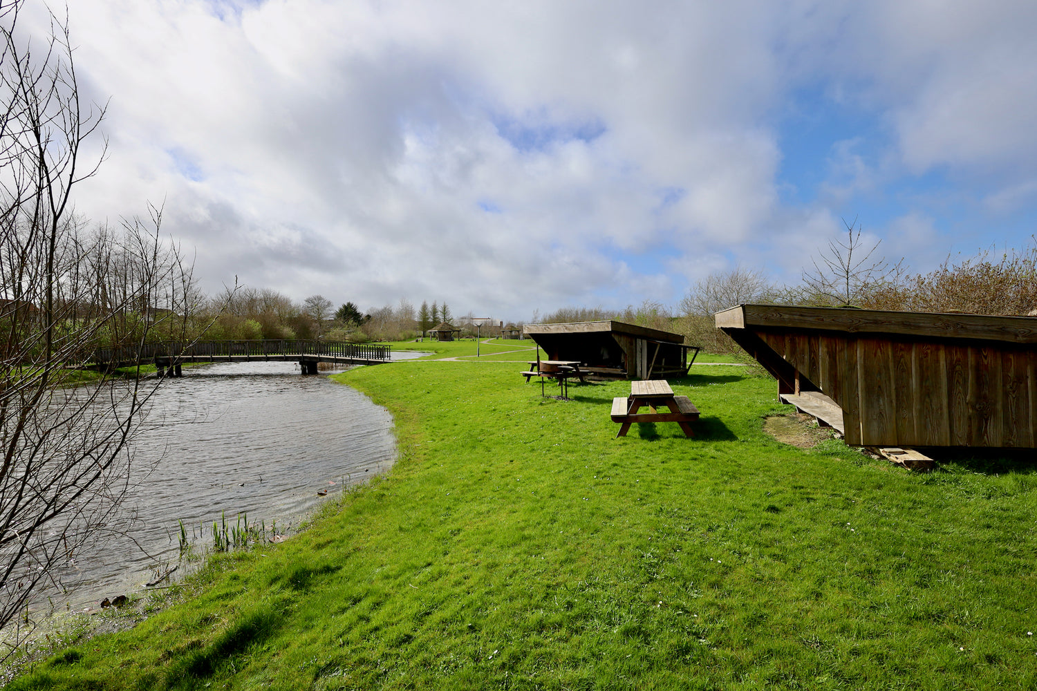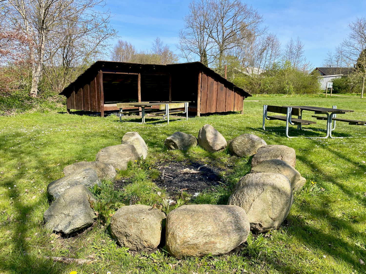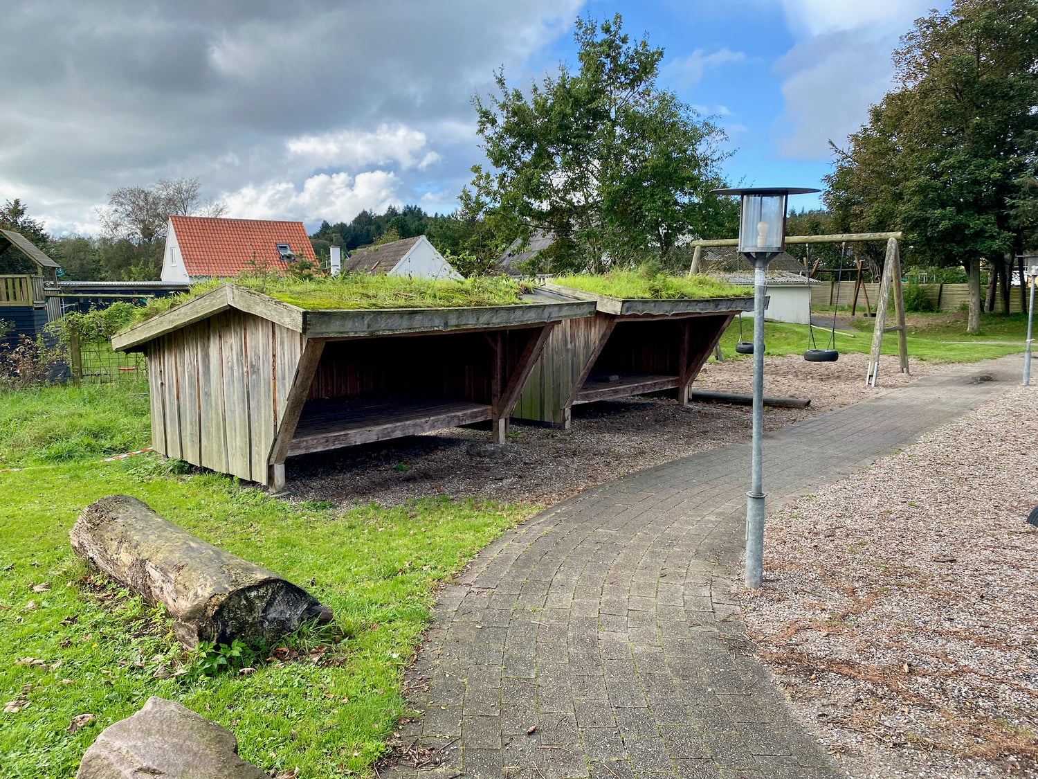 The shelter site is located in a green area in Biersted called "The Green Wedge". Here, you'll also find a sledding hill, nature playground, asphalt court for hockey, and plenty of space for play and fun.