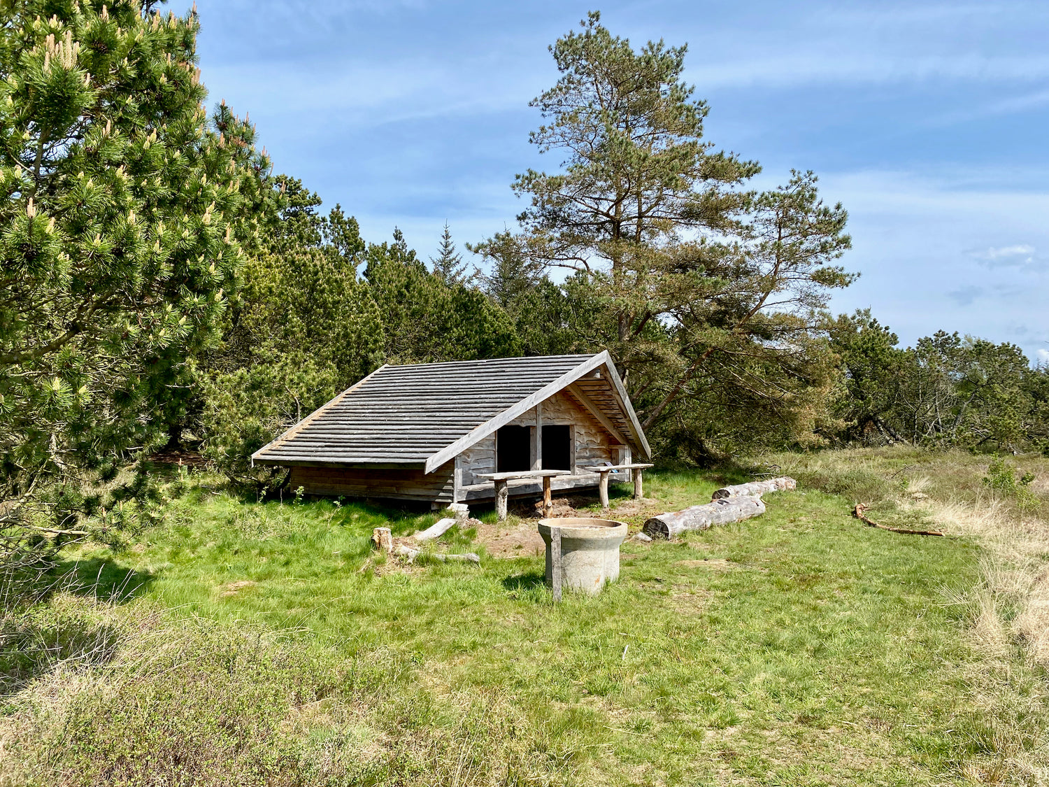 There are two shelters, each with space for approx. 6 people and an old work van with a tiled stove, where you can seek shelter in rain or cold (but not overnight).