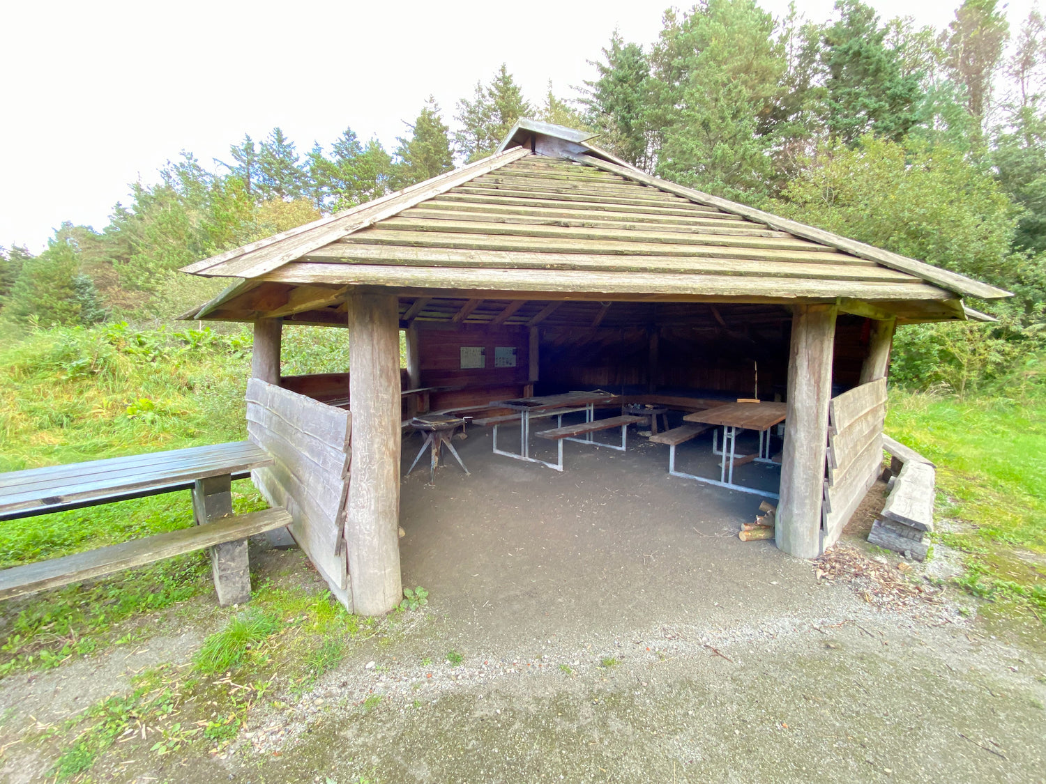 There are two benches in front of the shelter. Water is available at the car park approx. 100m from the shelter. No open flames may be used. The cooking island can be used for trangia or similar. There is no toilet.