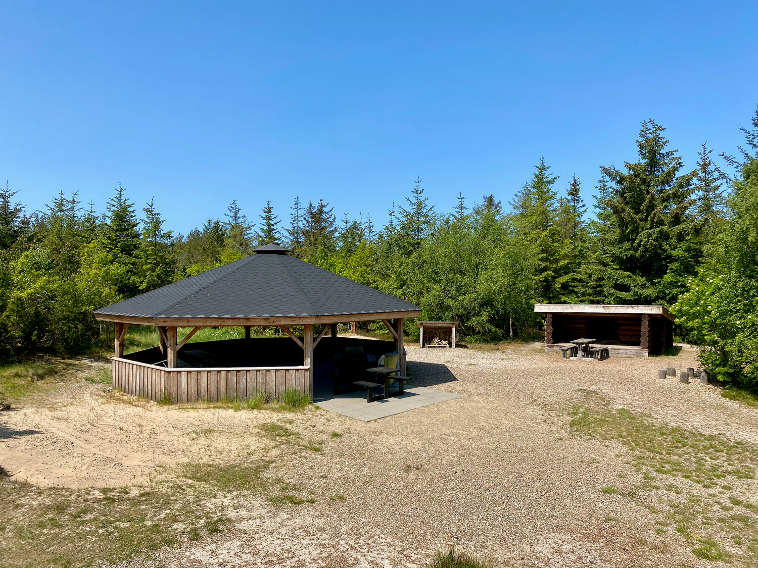 There is also a table/bench set, fire pit with grill grate and firewood. There is access to a toilet and drinking water at Forenings- og Kulturhuset "Lunden" on the opposite side of the road.