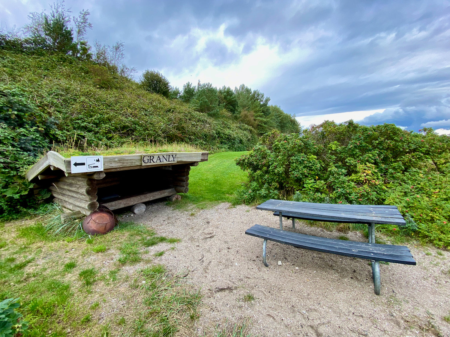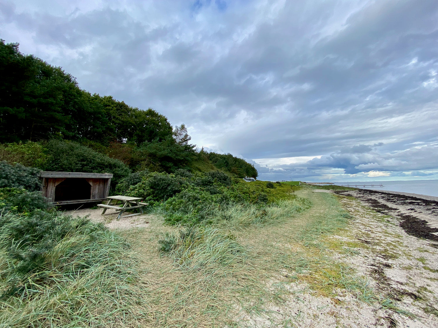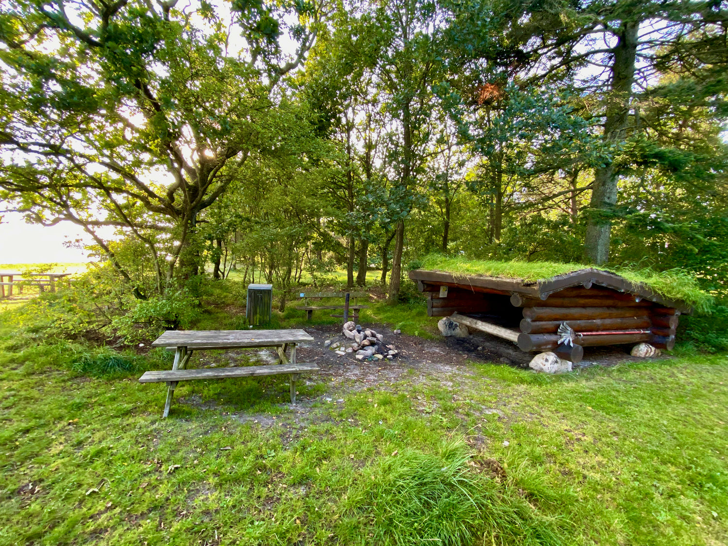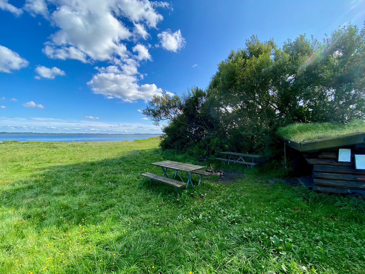 The shelter is located on the edge of a meadow by Gullerup Strand approx. 50m from the water's edge.