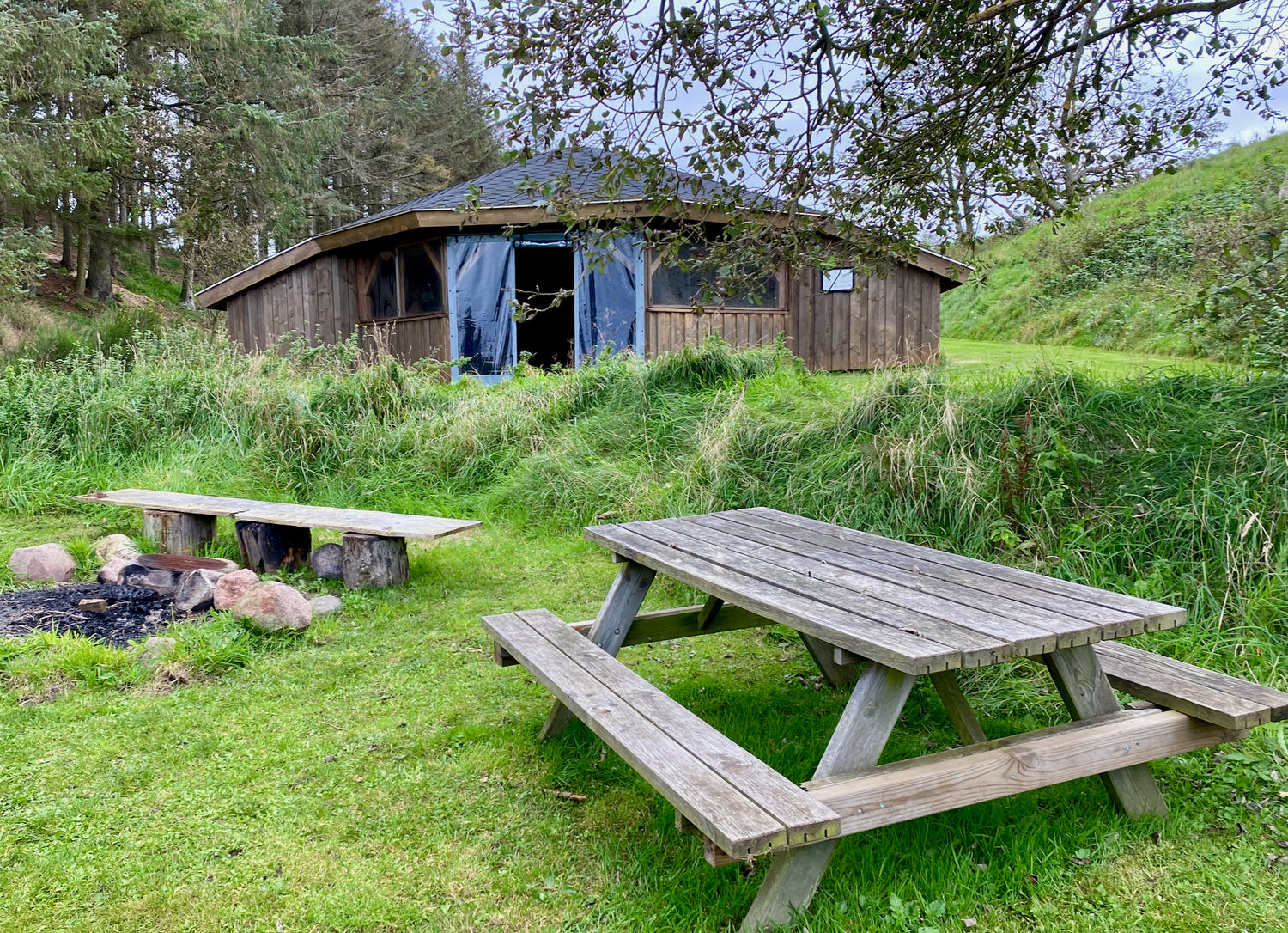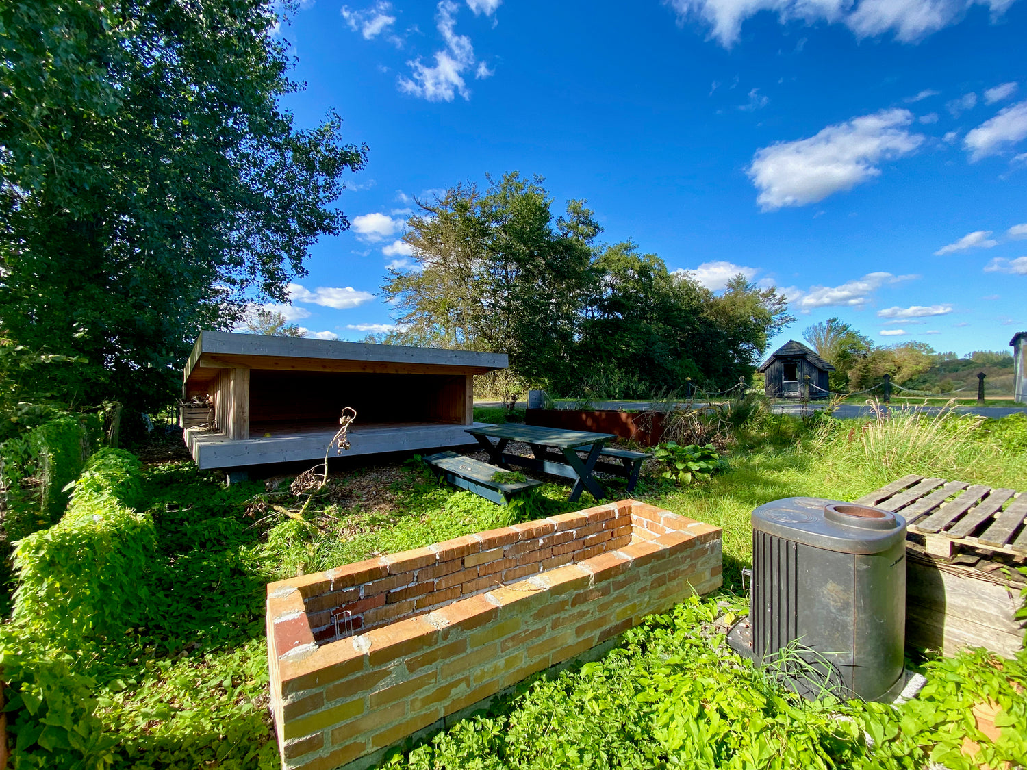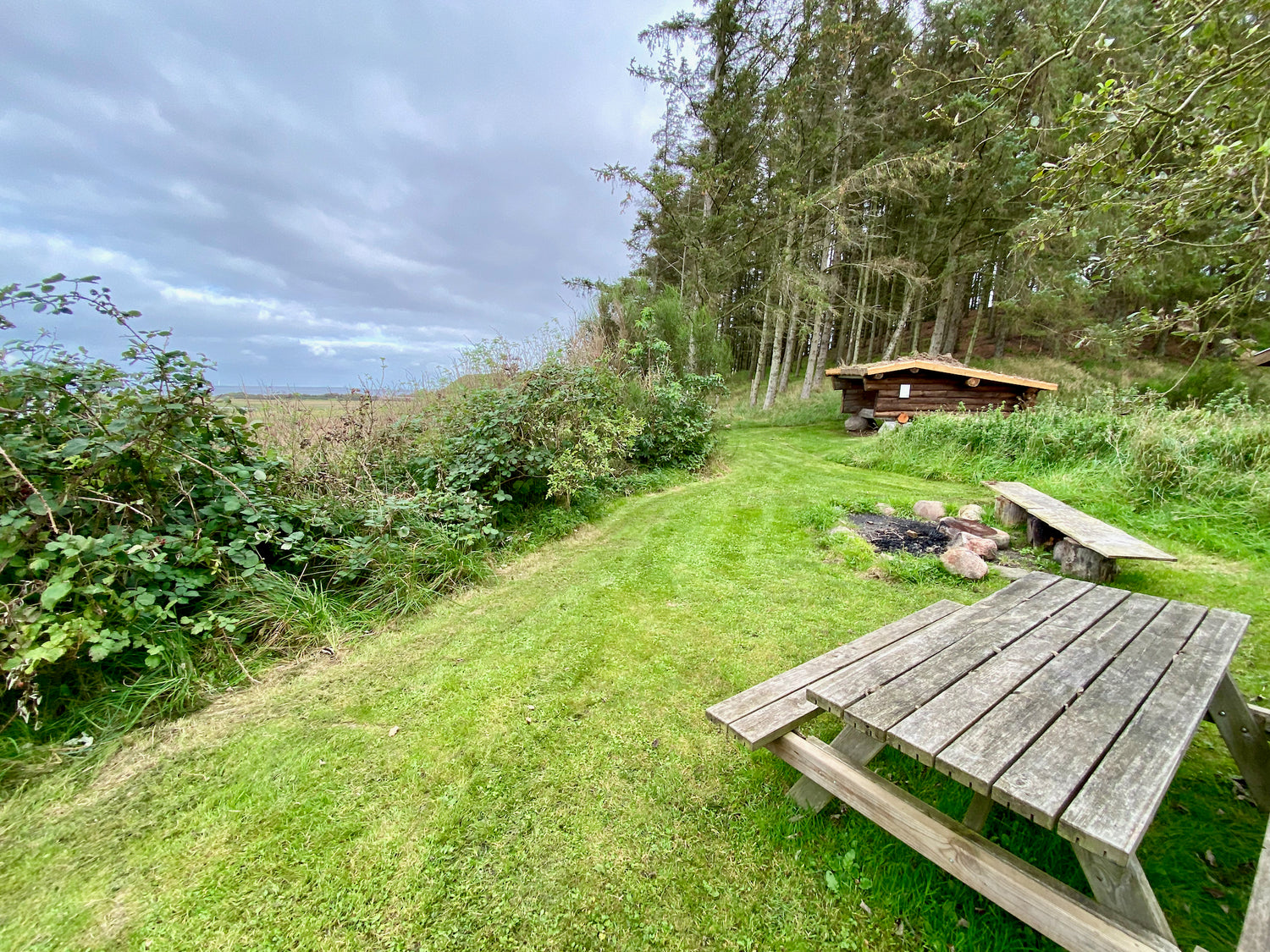 30m away, "Skovhytten" functions as a picnic house with several table/bench sets and 2 fire pits with grates. There is a toilet and water in the toilet building approx. 50m from the shelters by the road.