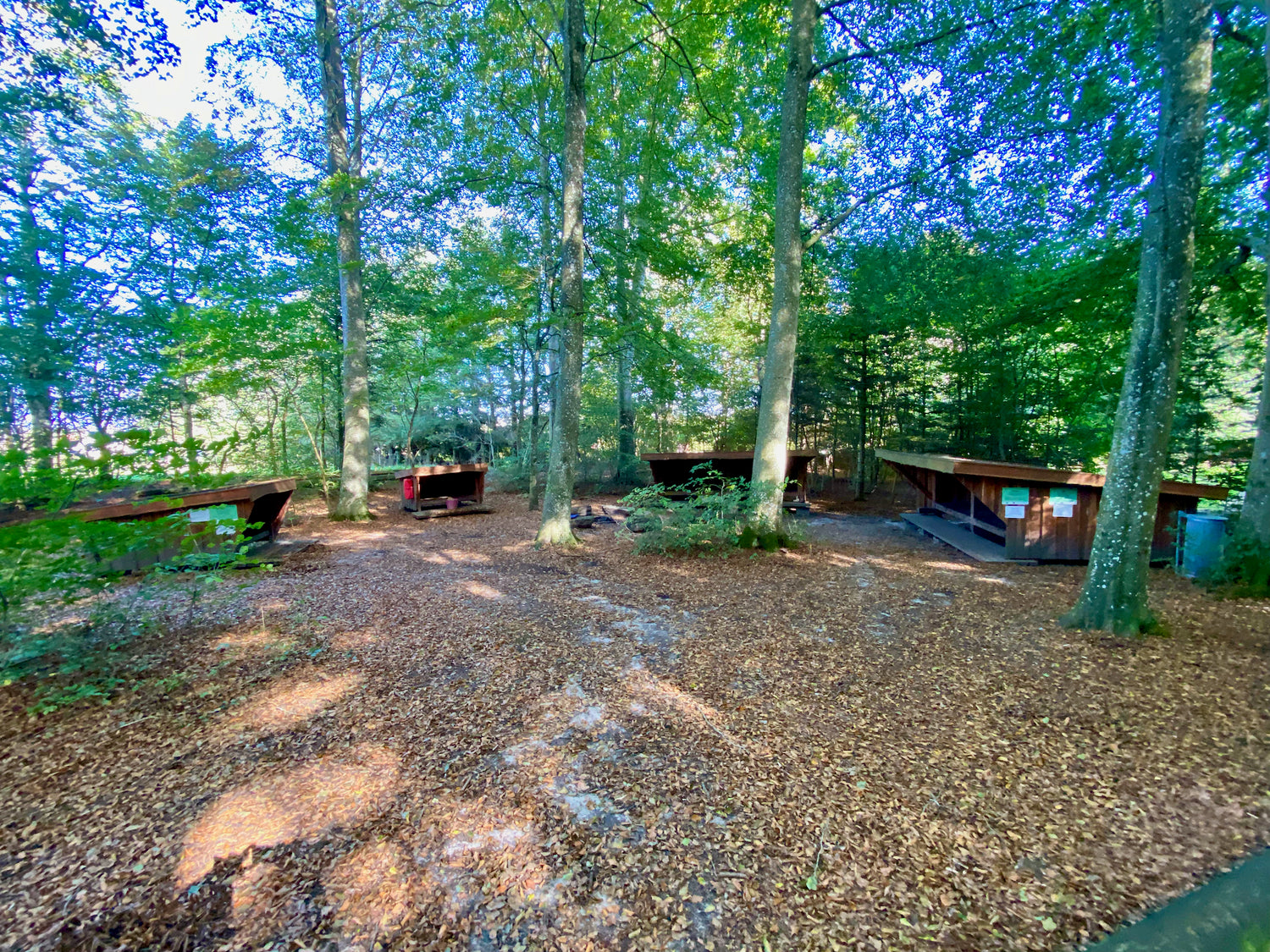 The shelters are located in the middle of the trees in Smedebjerge plantation in the heart of Vils.