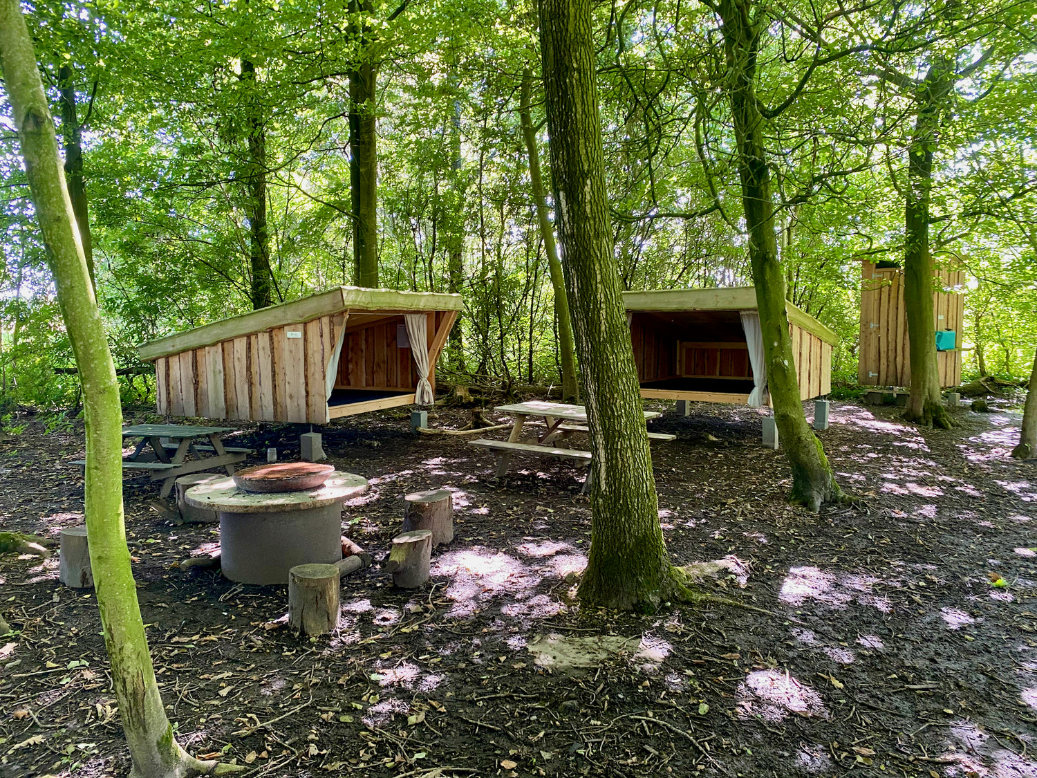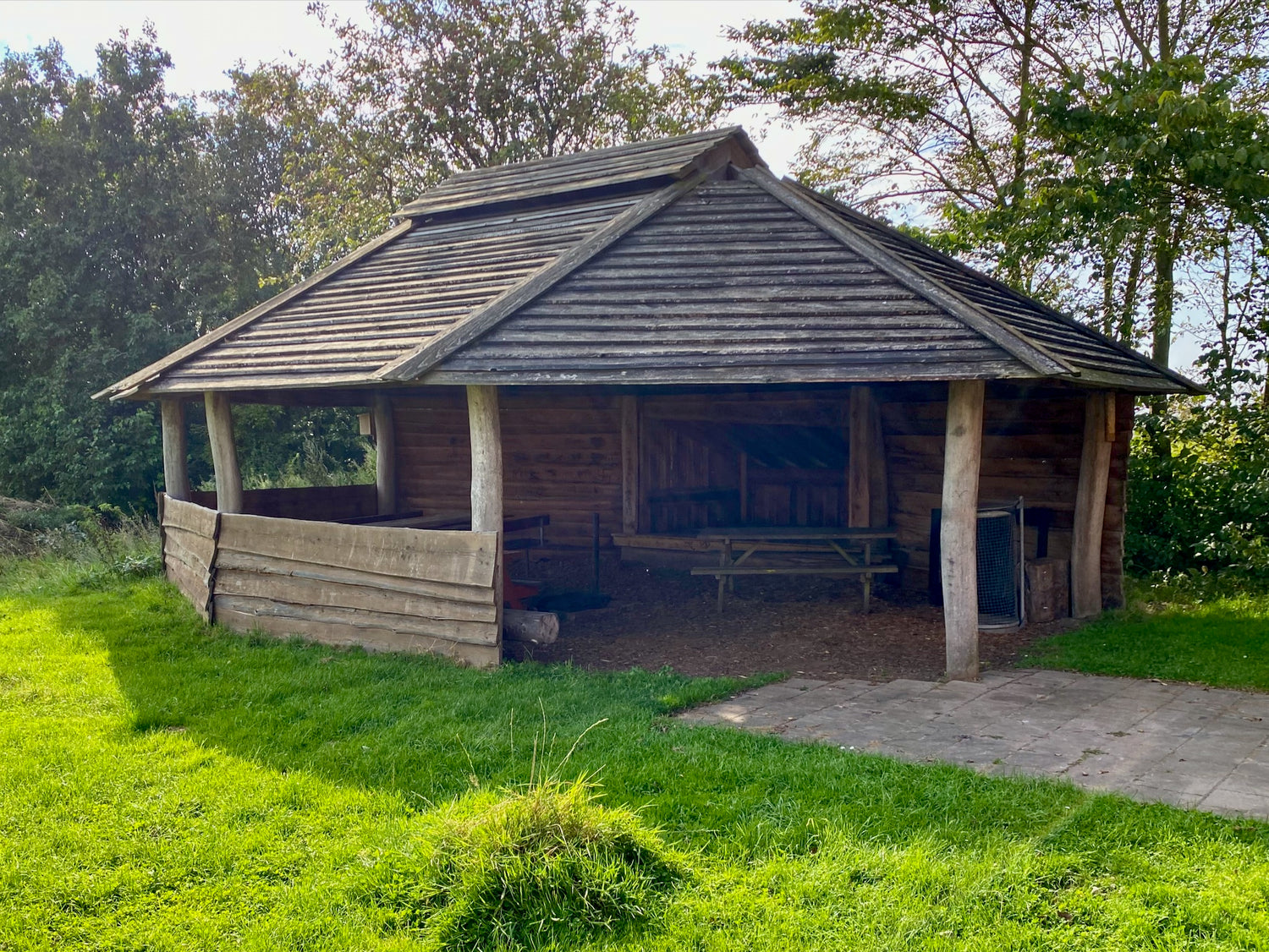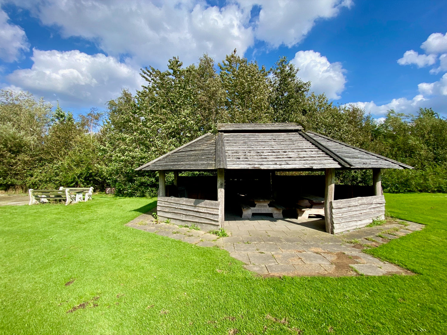 The shelters are located in a cozy corner on the edge of the sports field. There are two shelters, each with space for 4 people.