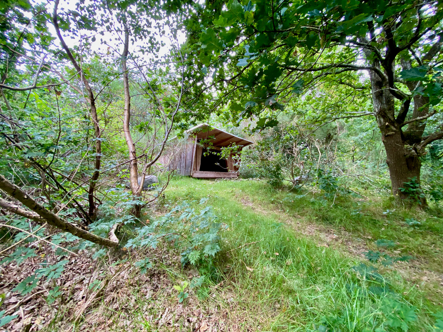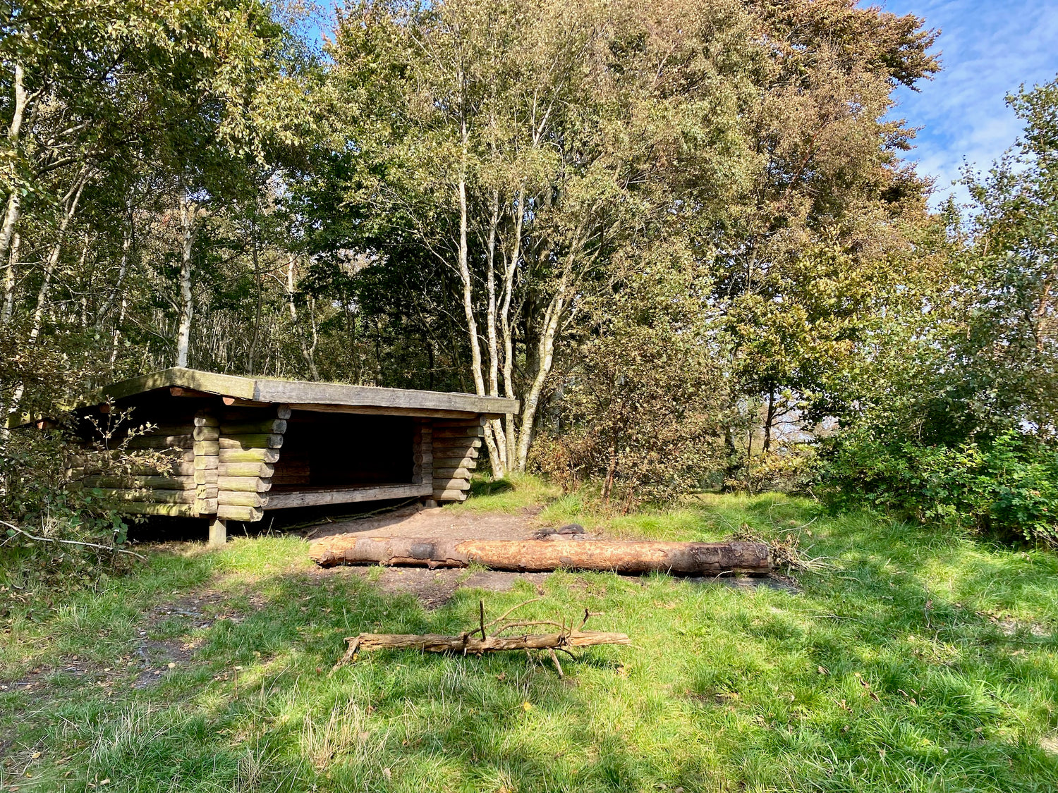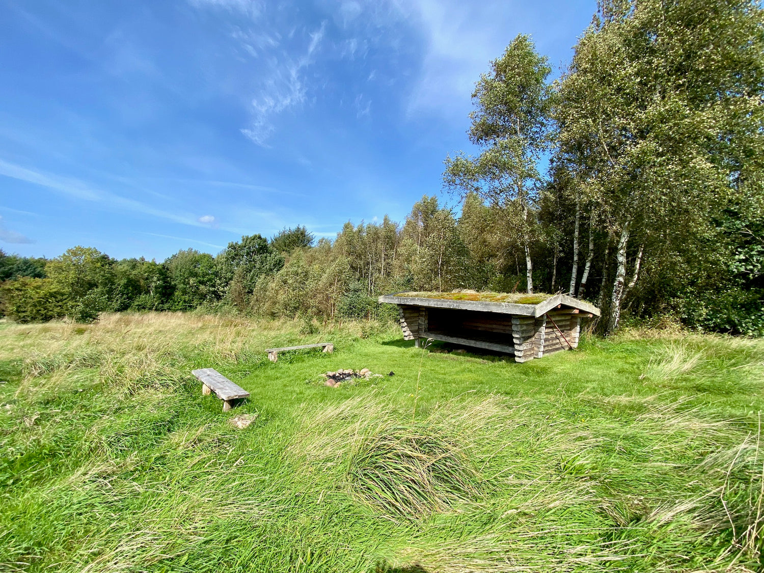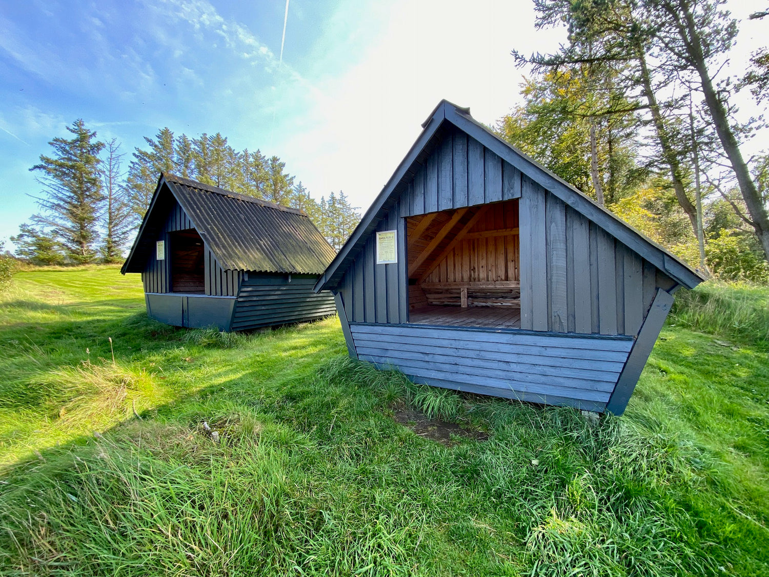 The shelter is located in a small, secluded thicket near the Salling Nature trail and borders a private forest.