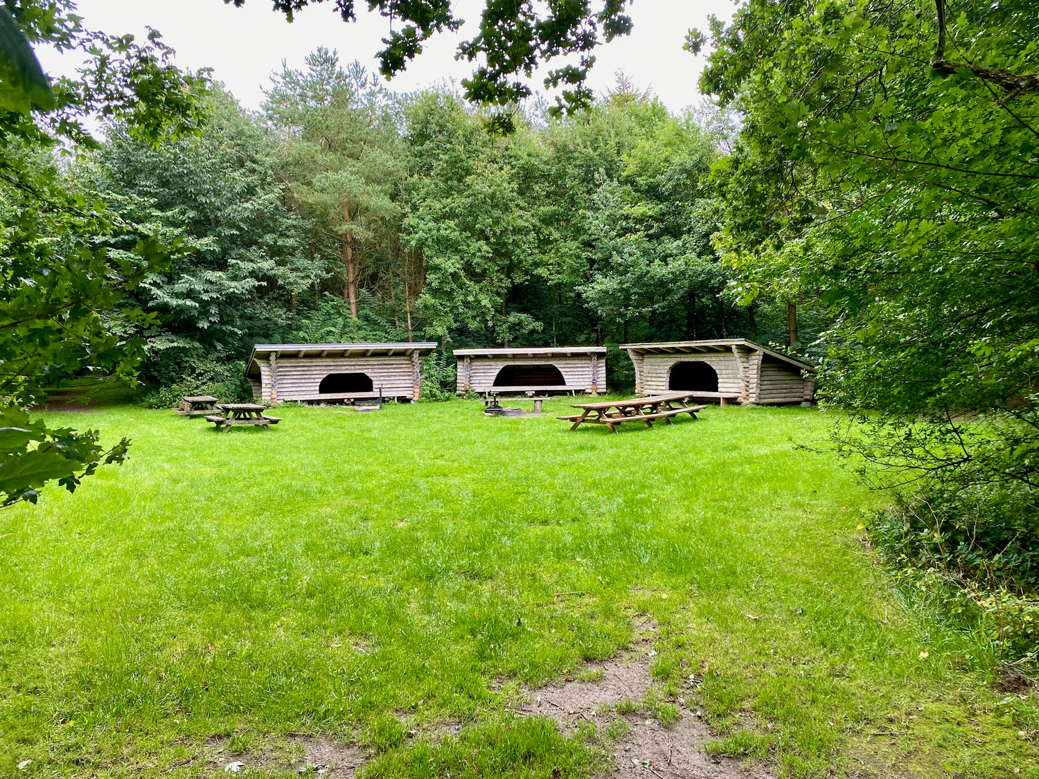 In the fire hut, there is a fire pit with a grill and several table/bench sets. Water and a toilet are available in the schoolyard, approximately 100 meters from the shelter.