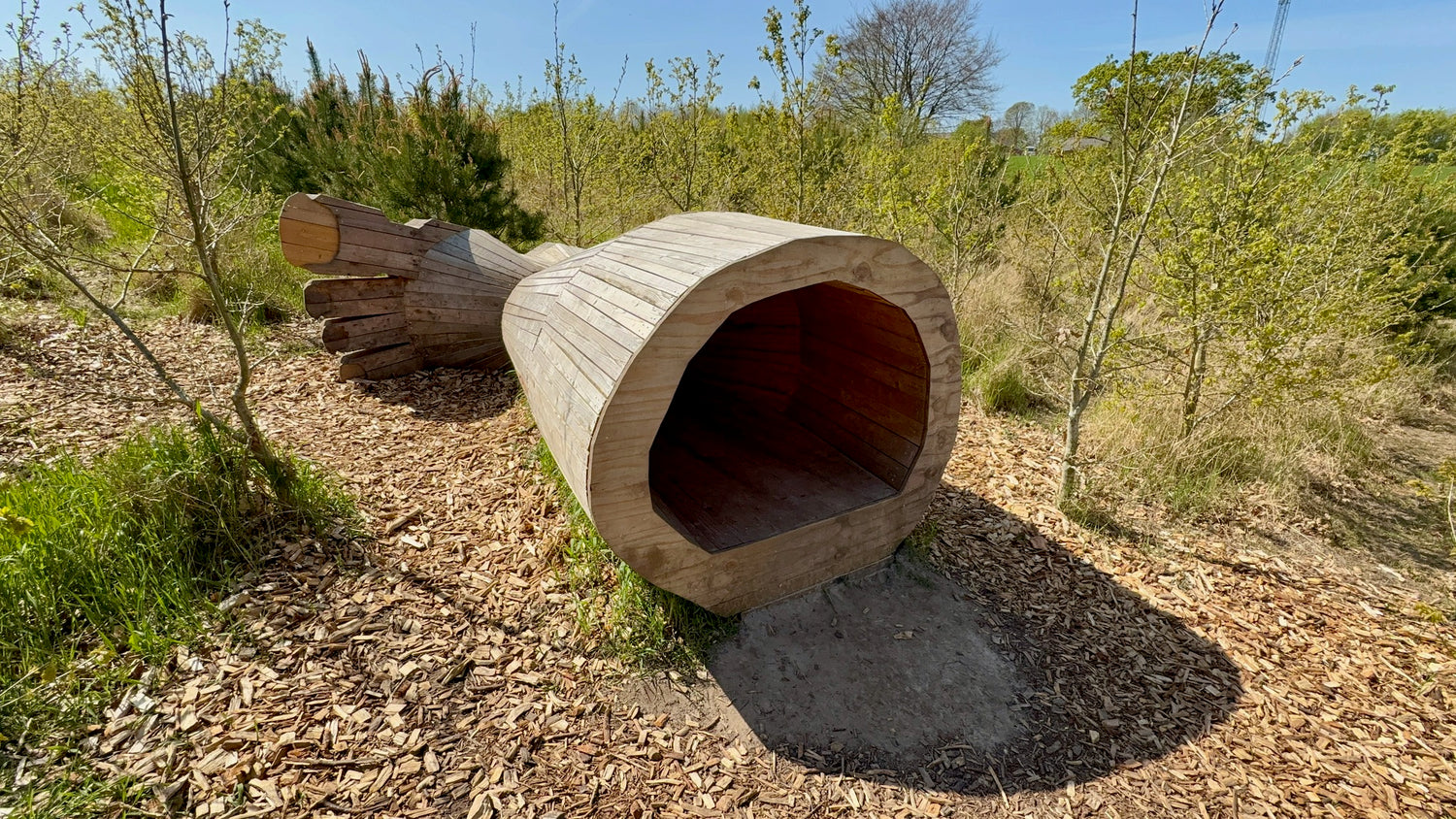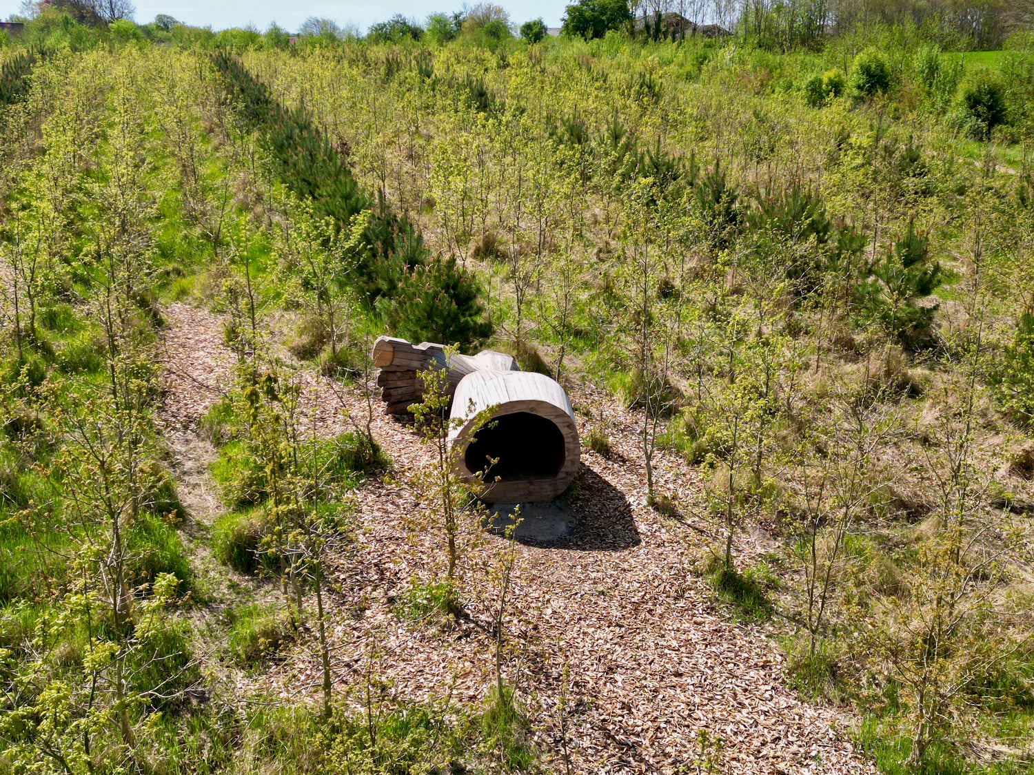 Helle Haltben's lost leg shelter is hidden in the newly planted forest in Hald Folkeskov close to Helle Haltben.