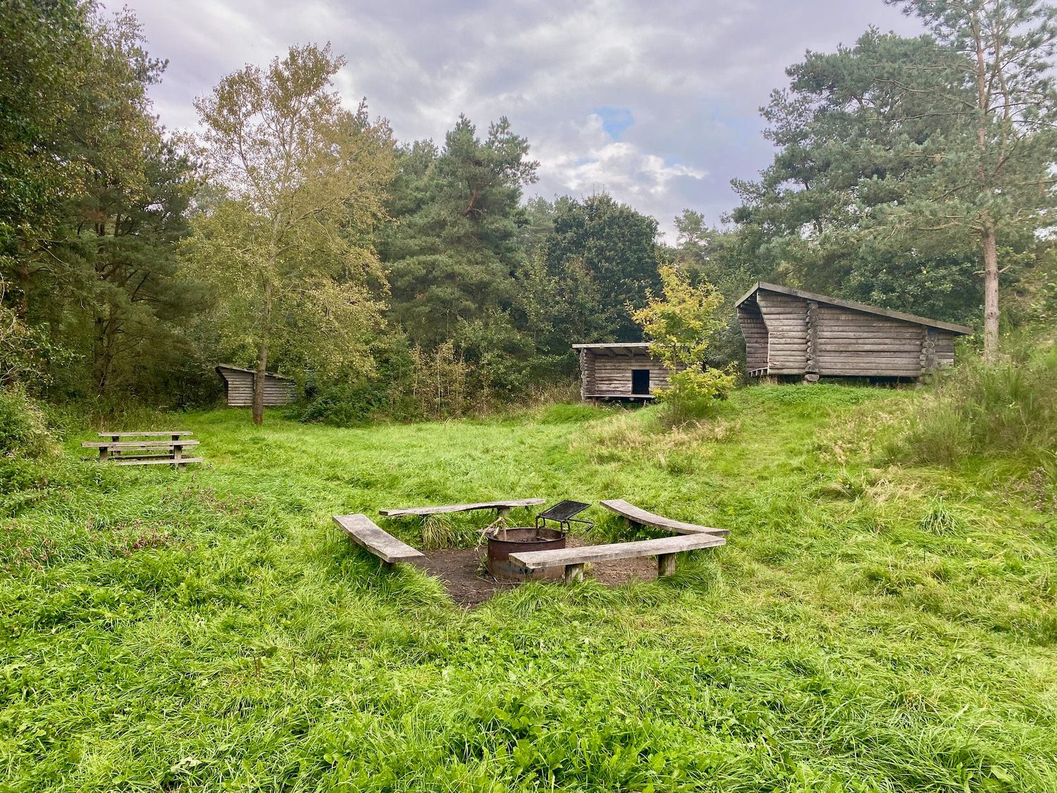 On the site there is a fire pit, table/benches, access to a primitive toilet, water and firewood