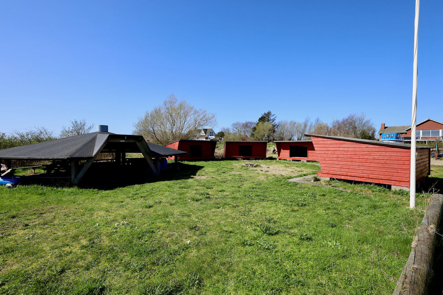 There are 5 shelters on the site with space for 5-6 people in each. There is an octagonal covered fire pit (approx. 65 m2), as well as several table and bench sets. In addition, there is drinking water, a toilet and the possibility of bathing at the harbor. Nearby there is also a lookout tower over the Limfjord.
