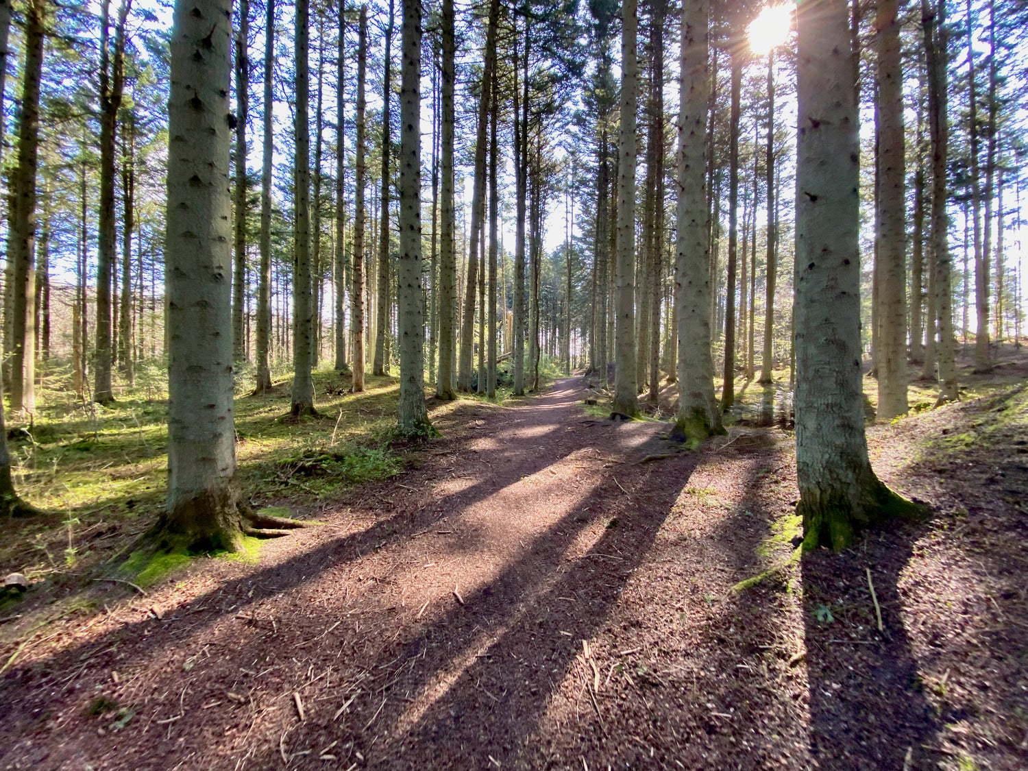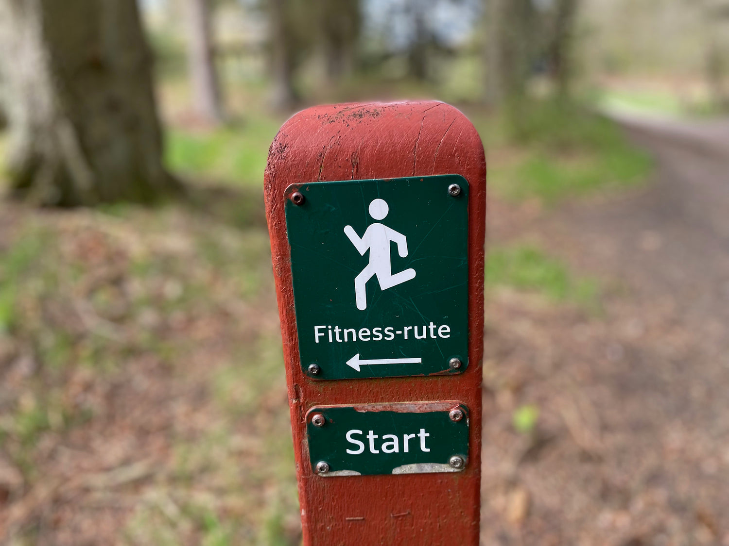 Fitnessruten fører dig på en hyggelig, lille rundtur i Blokhus Klitplantage under susende trækroner.