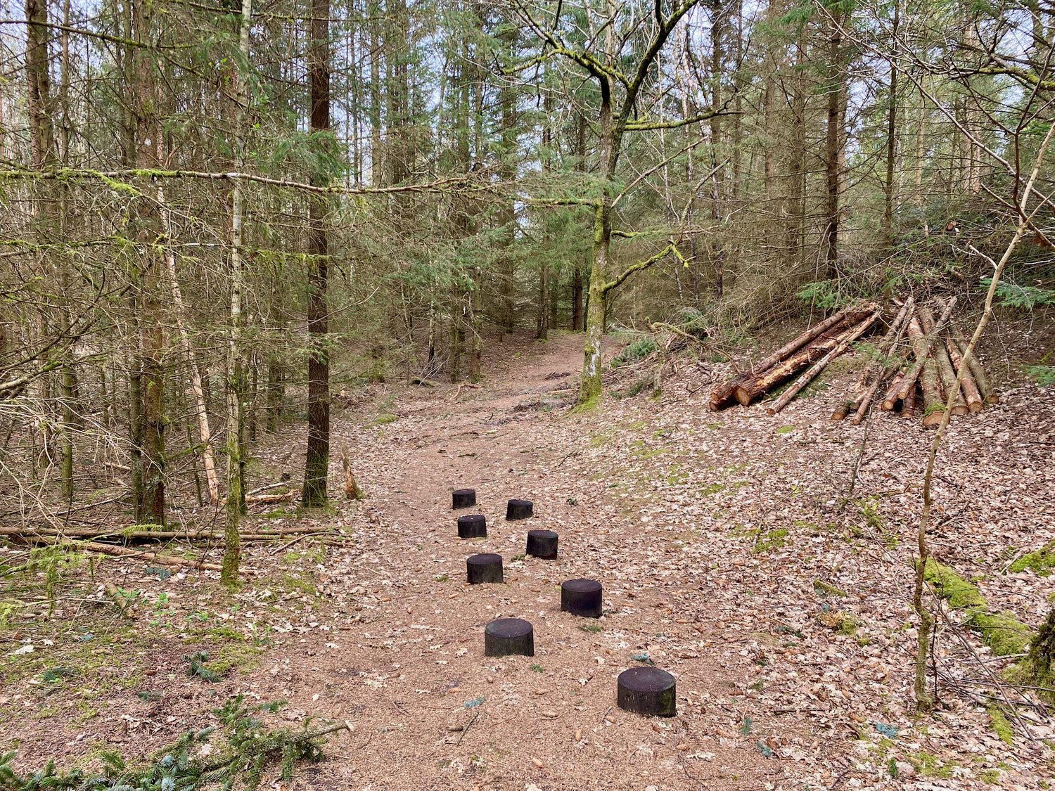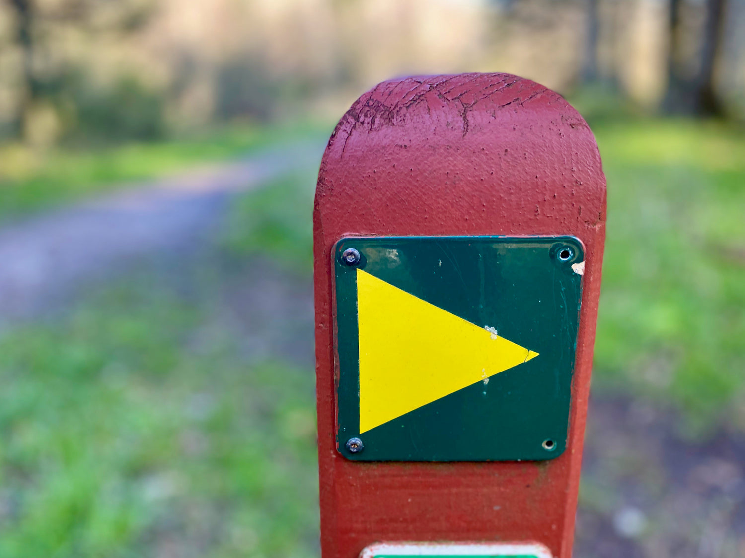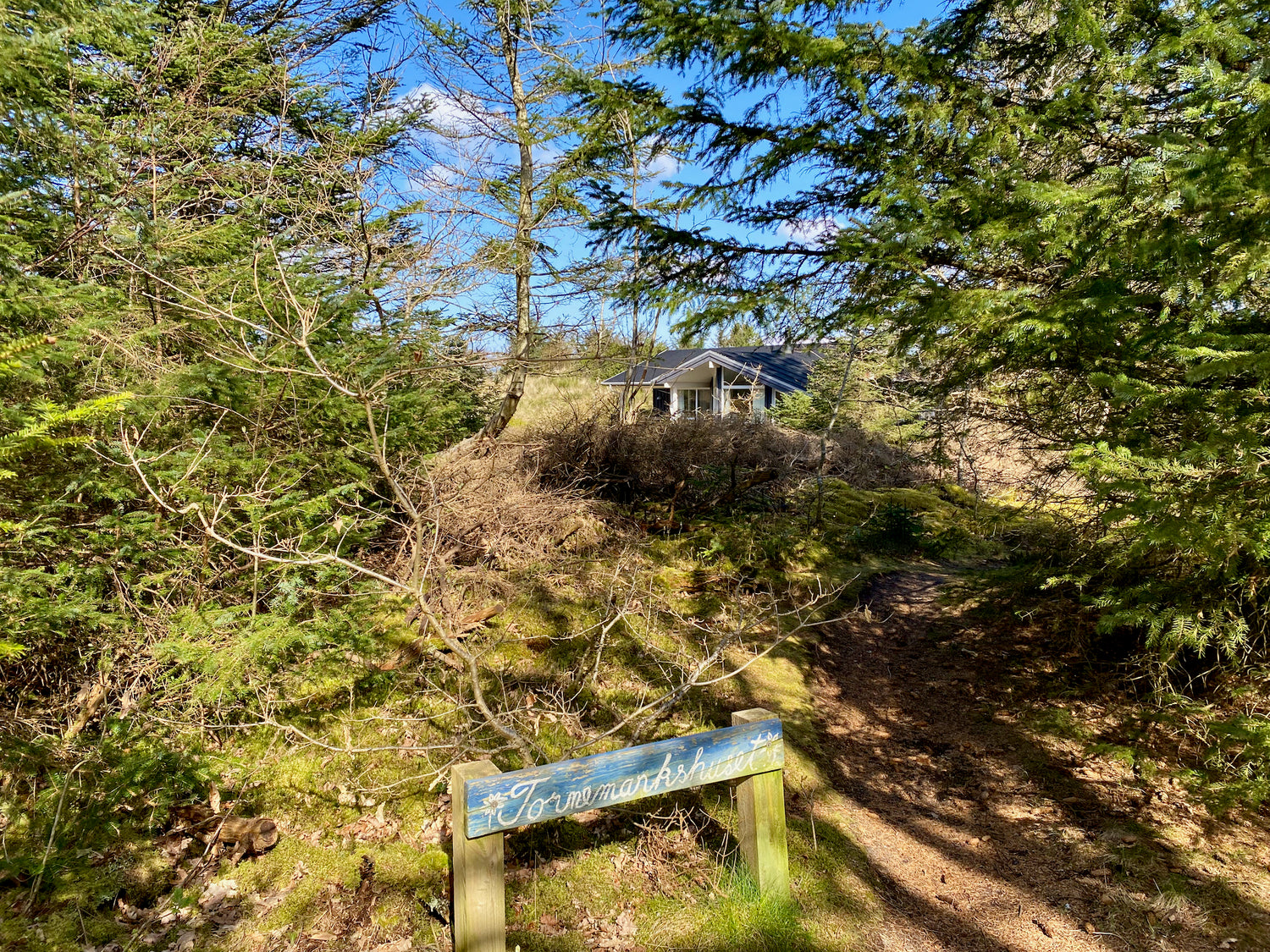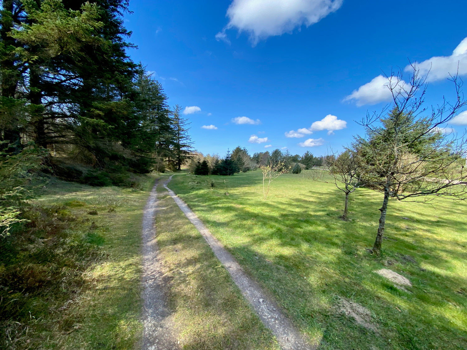 Den gule vandrerute, som ligger ved hundeskoven i Kirkesande, snor sig gennem det varierede terræn i Blokhus Klitplantage.