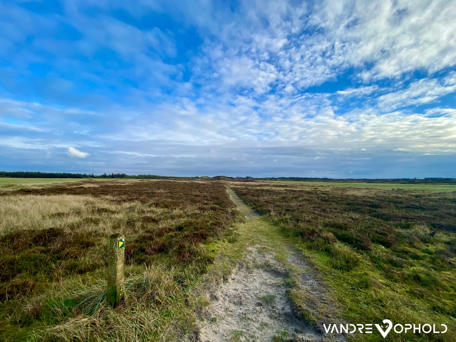 Vandreområdet ved Tranum i Jammerbugten byder på unikke naturoplevelser. Udforsk klitheden ved Rødhus, de smalle stier gennem moserne, og de skovklædte områder i Tranum Klitplantage.
