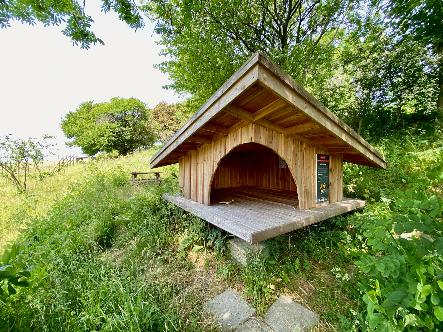 Shelterne er placeret på skrænten syd for Ørnbjerg Mølle med smuk udsigt og aftensol.