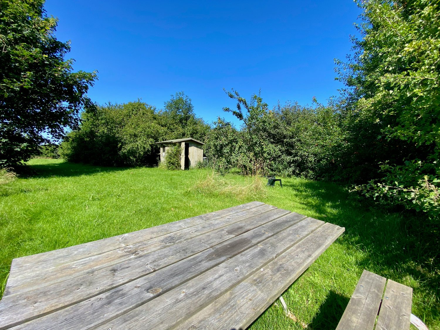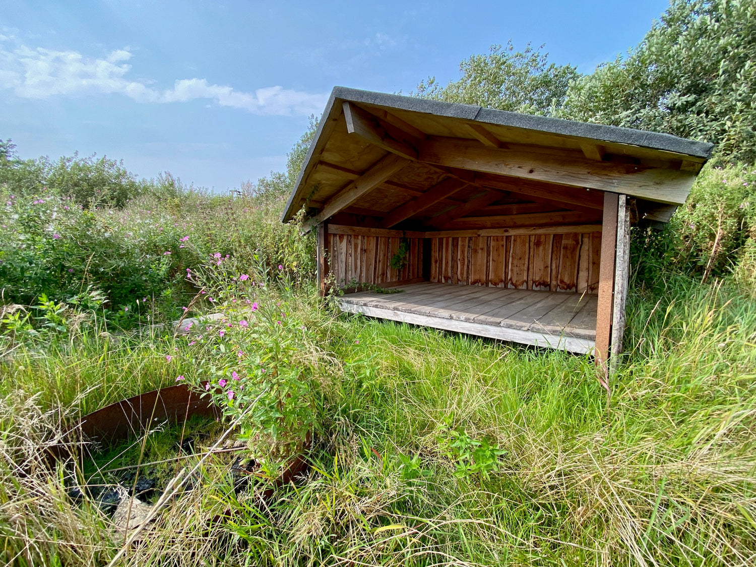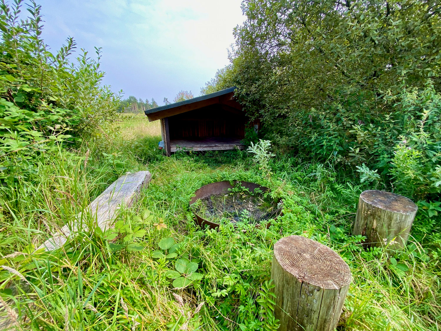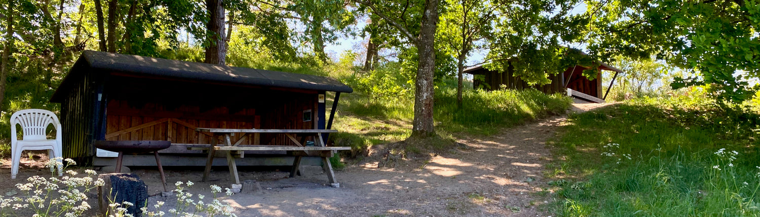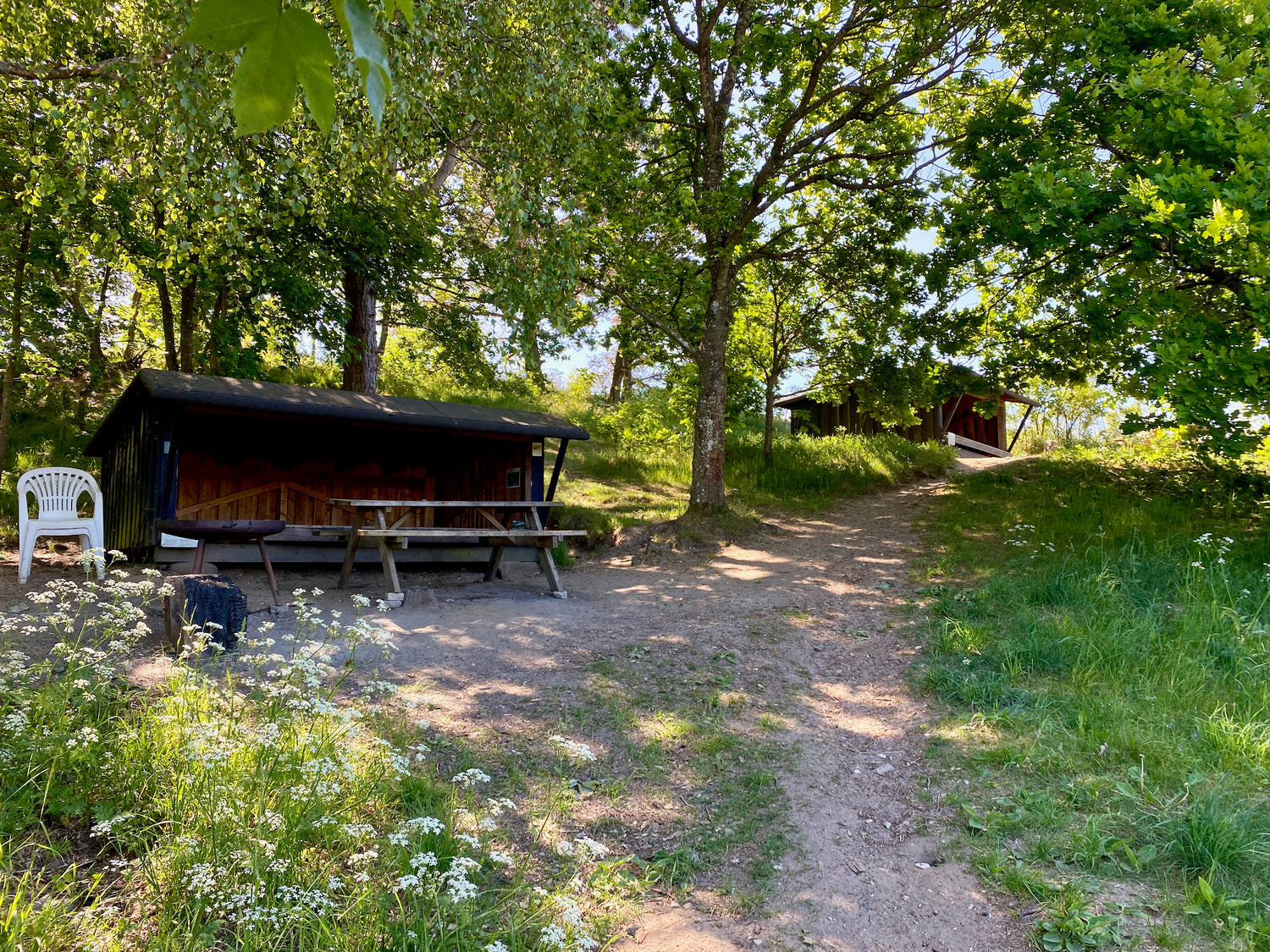 Der er et fint hjemmelavet shelter med plads til 6-8 personer og desuden et skur med plads til 2 personer.