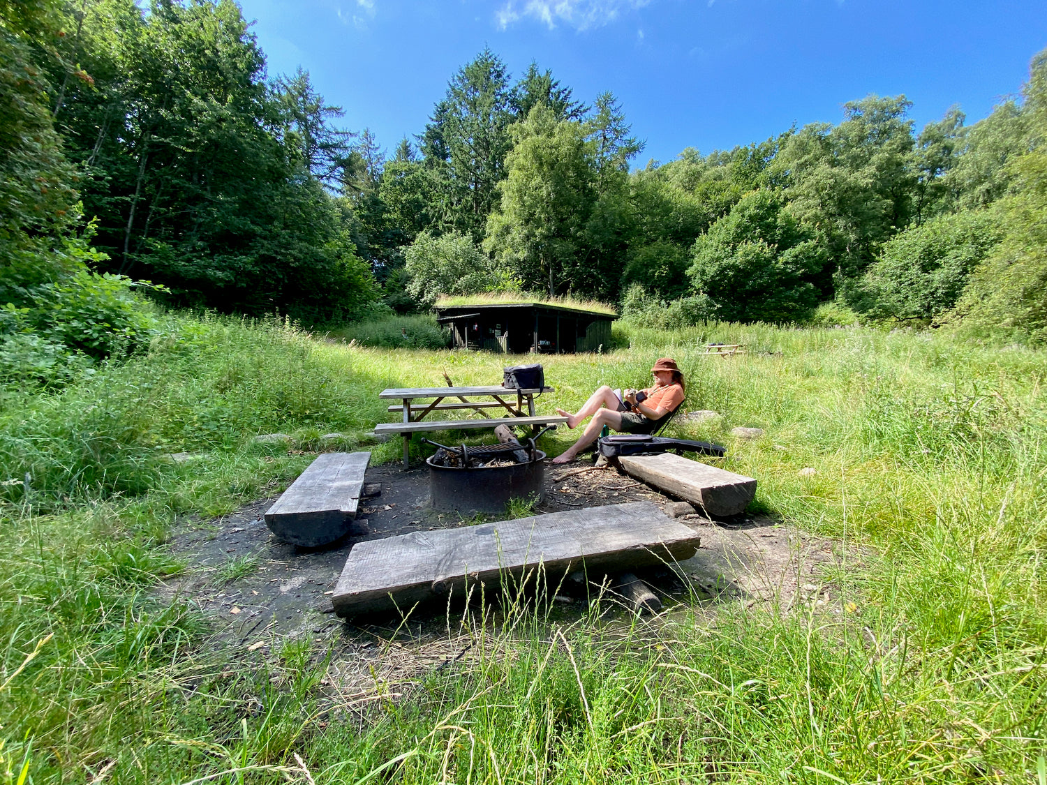 Ved shelteret findes der et bord/bænkesæt og et lille bålsted. Brænde kan købes ved herberget (ca. 50m).