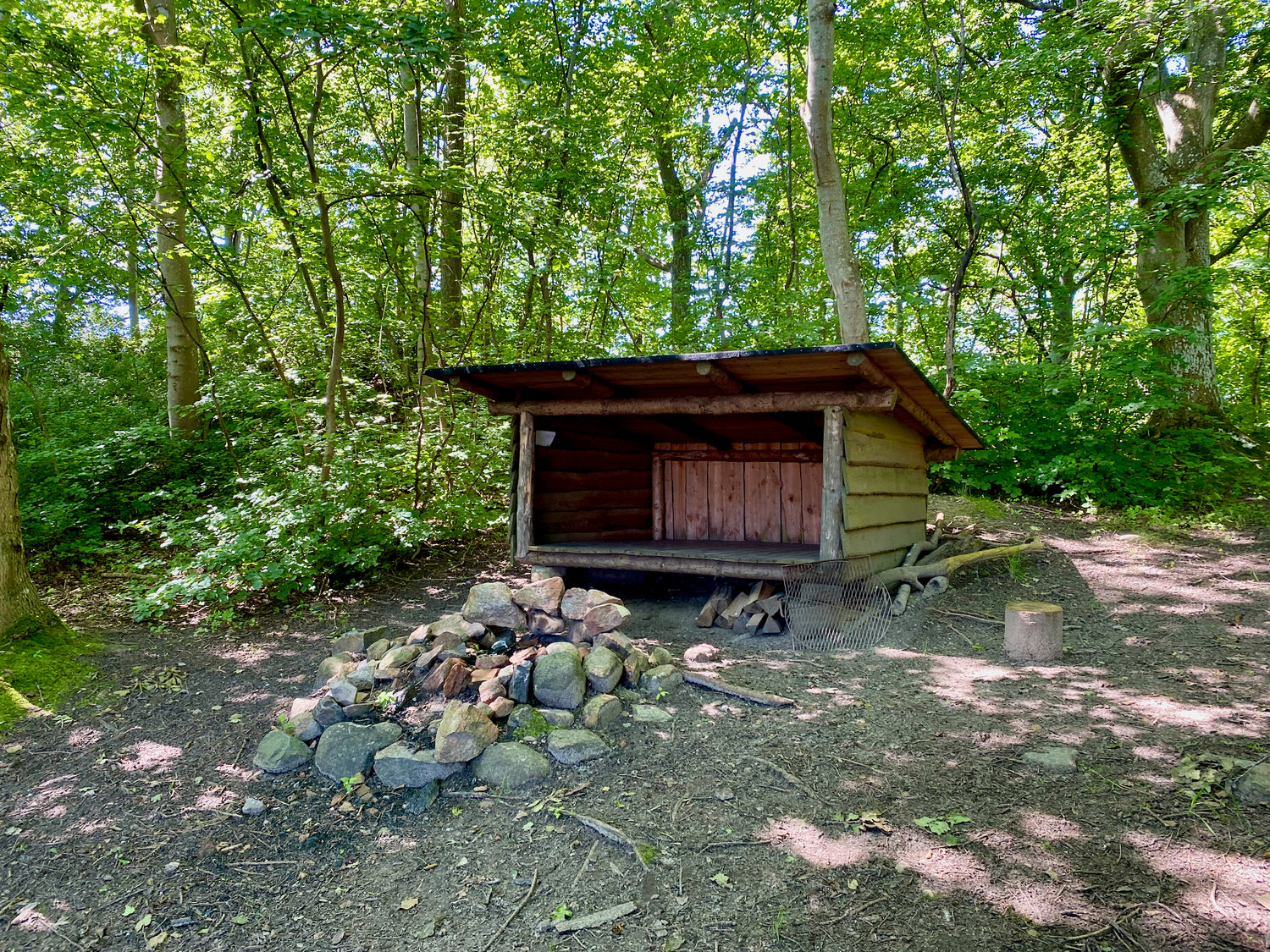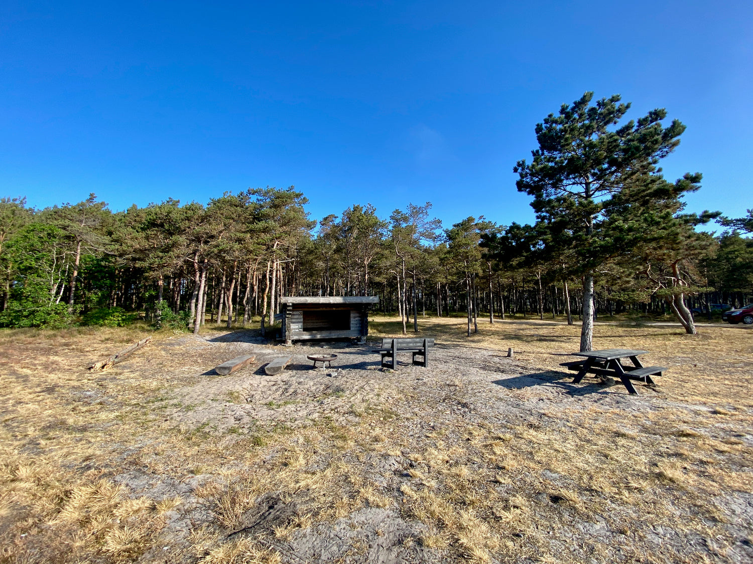 På shelterpladsen er der opstillet to shelters lidt inde i egekrattet lige ved Ahl Strand.