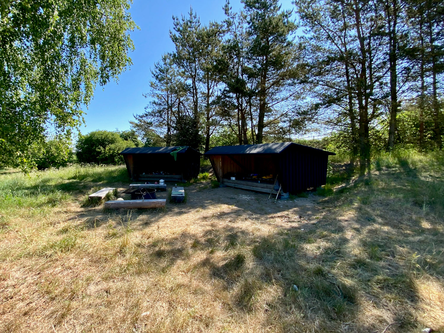 På pladsen er der to shelters med plads til ca. 5-6 personer hver.