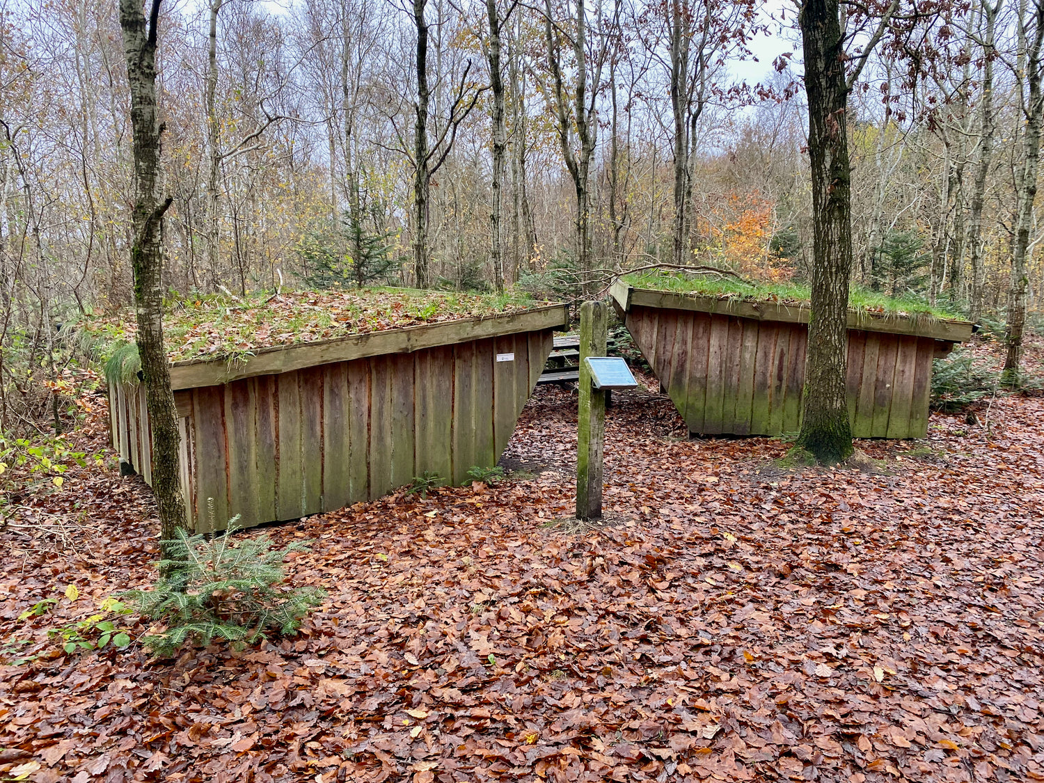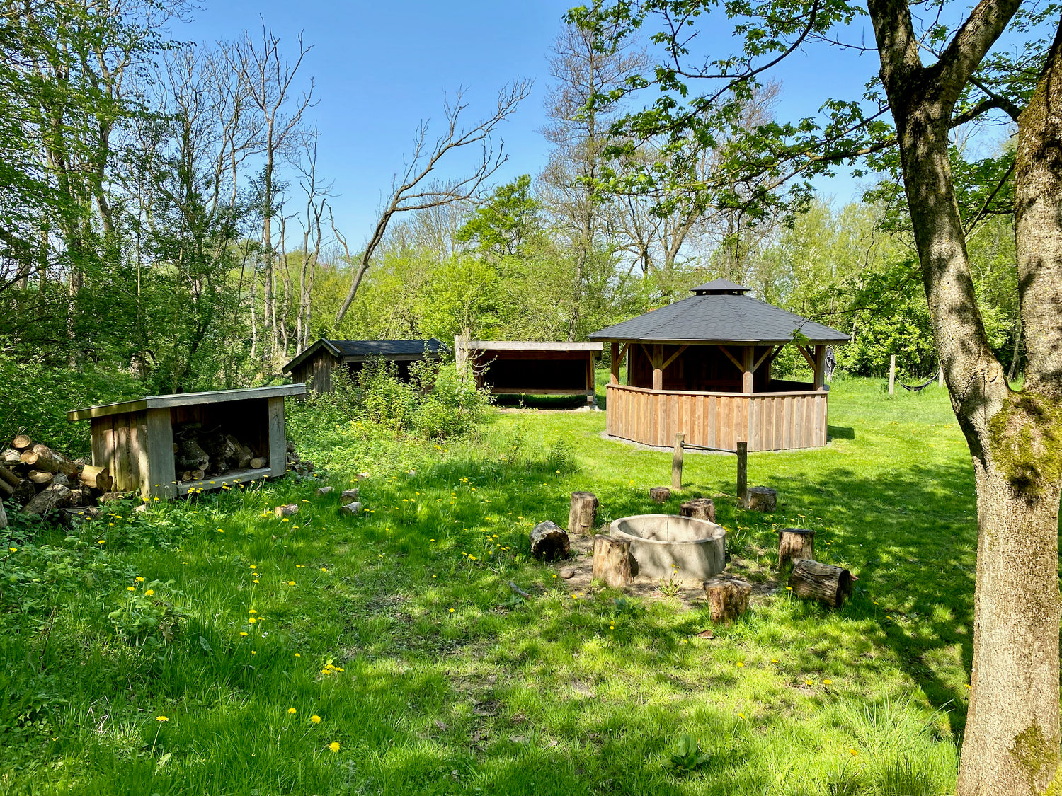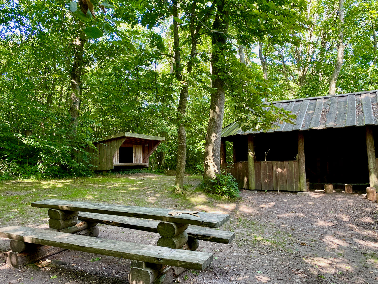 Shelterne ligger tæt på Købmandsgården i en lille lysning og består af 4 shelters med hver plads til 5-8 personer