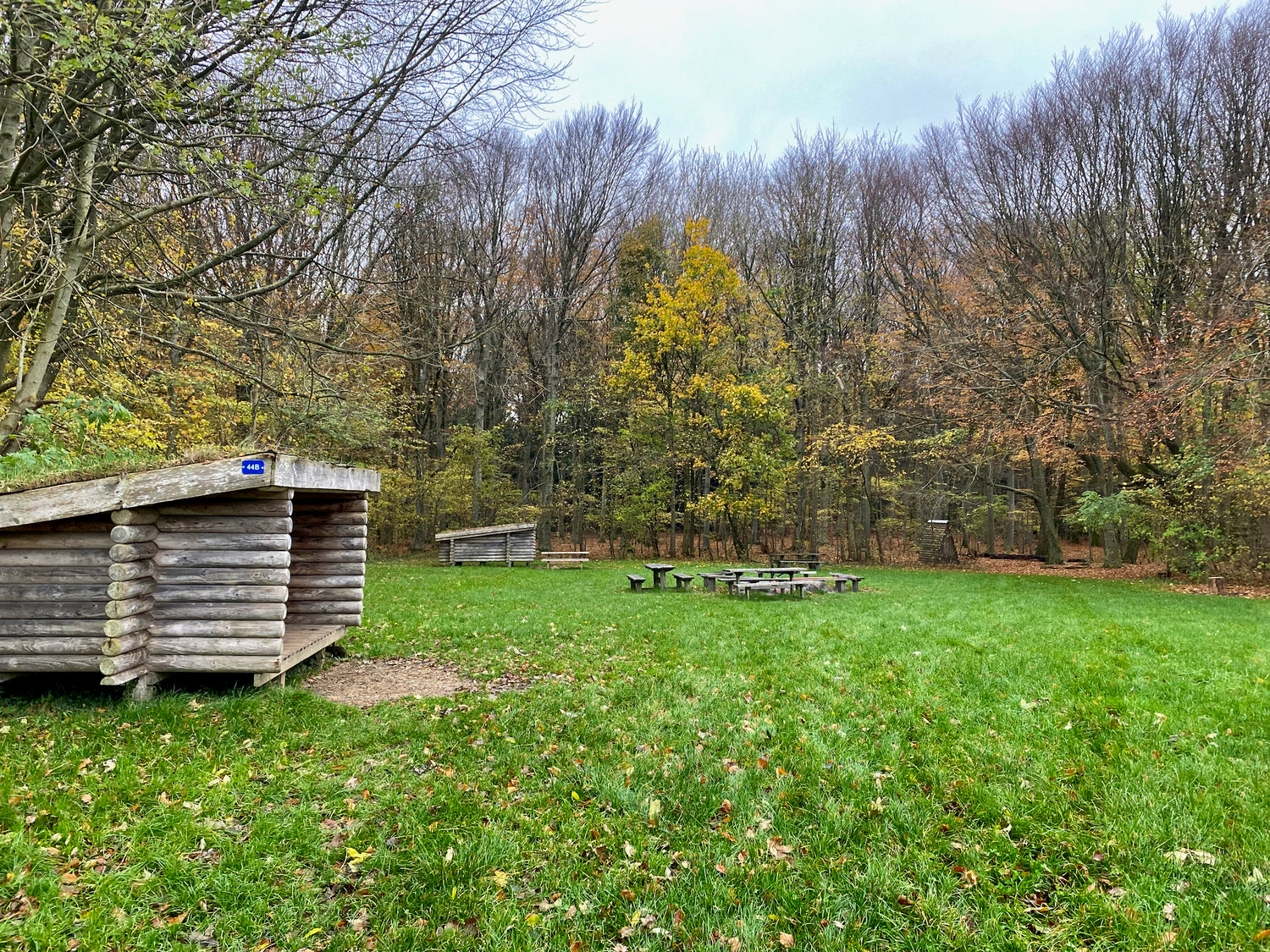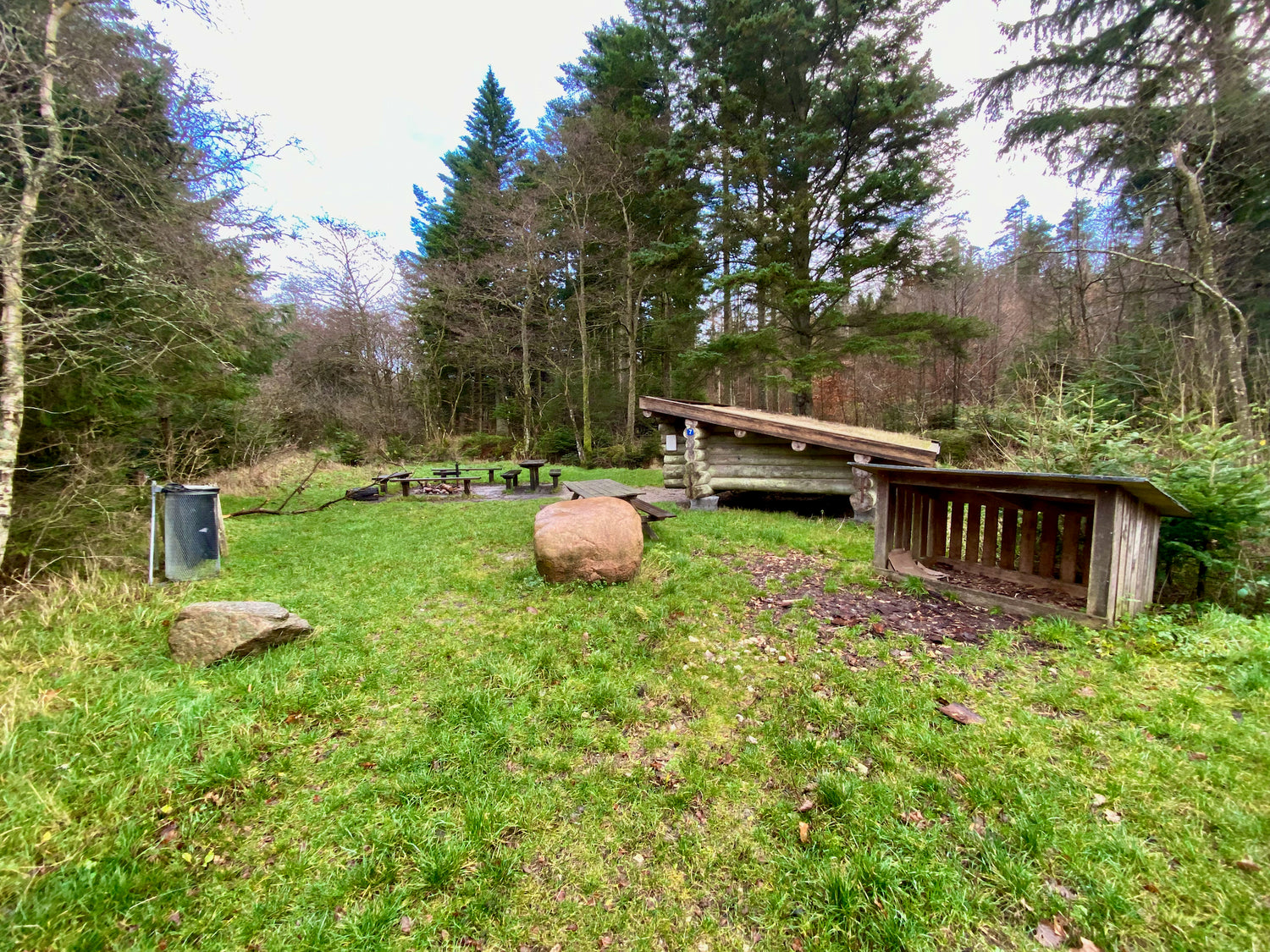 Ydby shelters er beliggende lidt inde mellem træerne lige ved udkanten af den åbne festplads ved Tvolm Skov i Ydby.