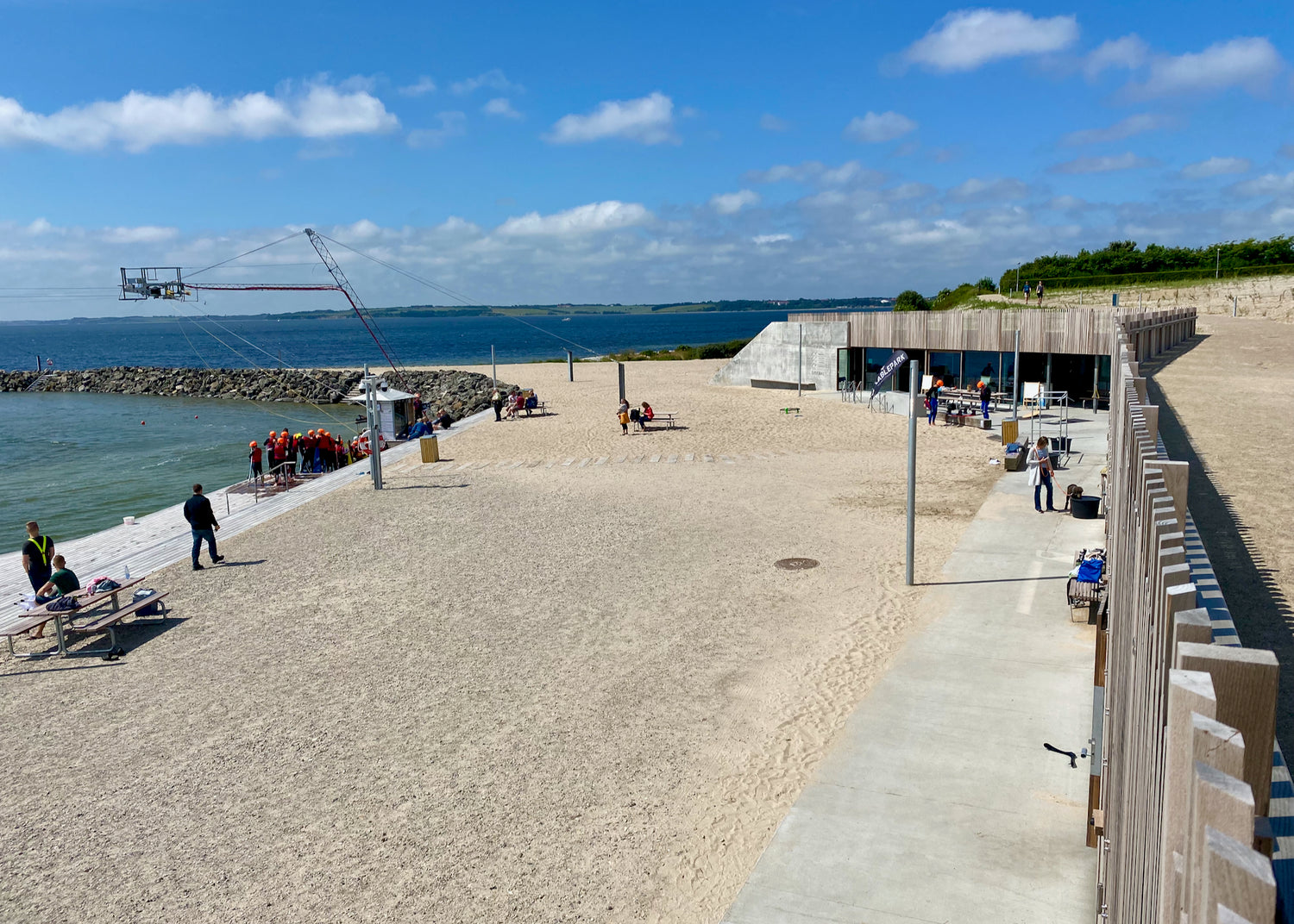 Wakeboarding består i at man på et bræt bliver trukket efter et kabel. Det er lidt ligesom at stå på vandski efter en båd, bare at det er nemmere og sjovere i en kabelpark! Man kan også slænge sig på terrasserne, tage børnene med ned og lave sandslotte på sandstranden, hope i vandet eller smide en pølse på grillen.