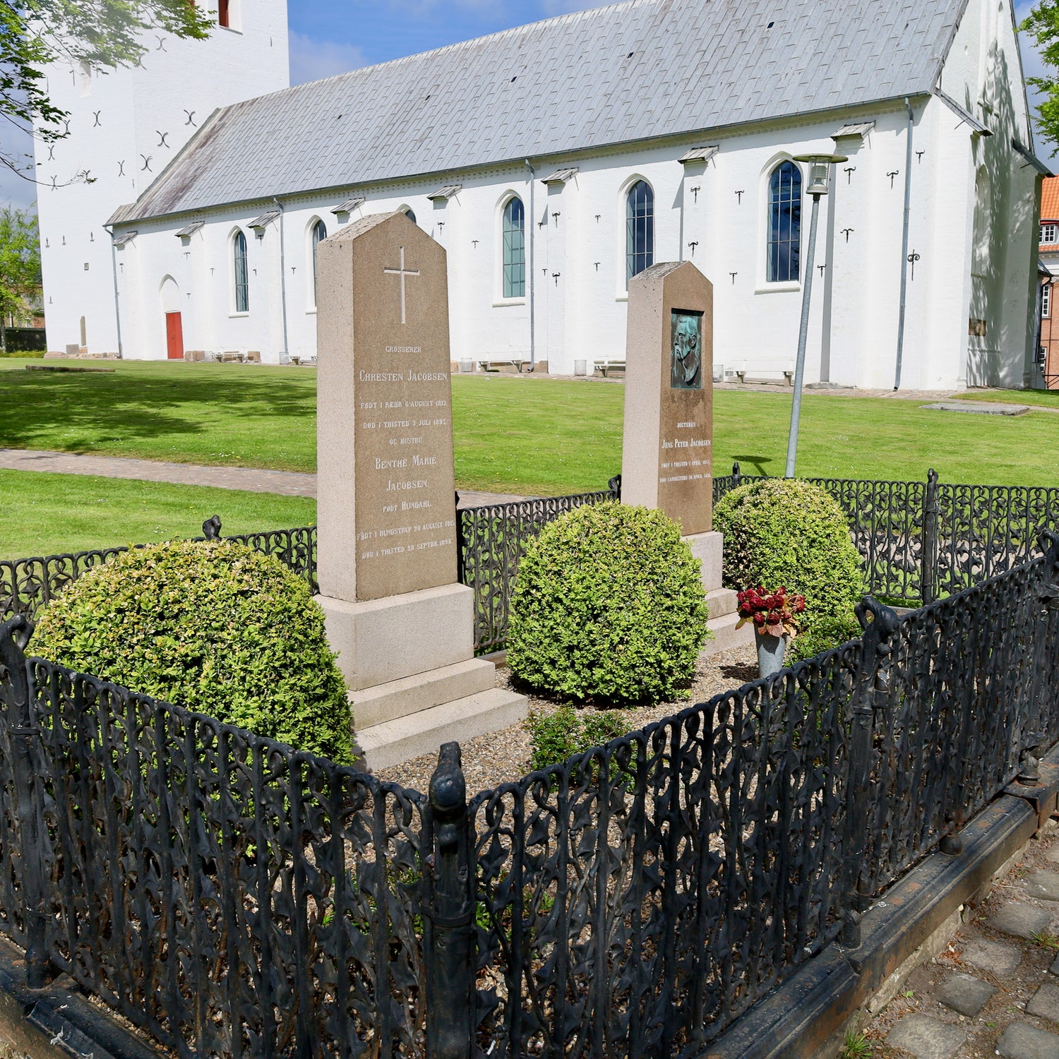 J.P. Jacobsens gravsted står på kirkegården ved Thisted kirke, ikke langt fra Store Torv. Han regnes for én af Danmarks mest betydningsfulde forfattere. Han var født og opvokset her i Thisted og på grund af tuberkulose levede han en stor del af sine sidste tolv år hos forældrene, hvor han døde i 1885 – kun 38 år gammel.