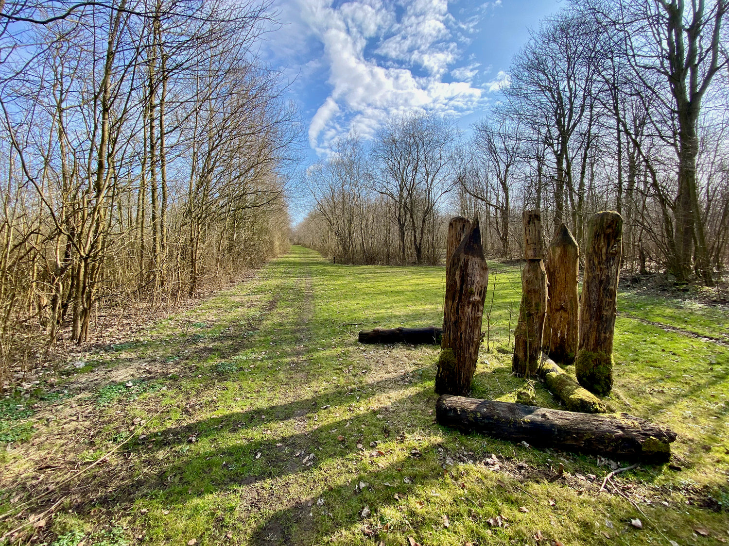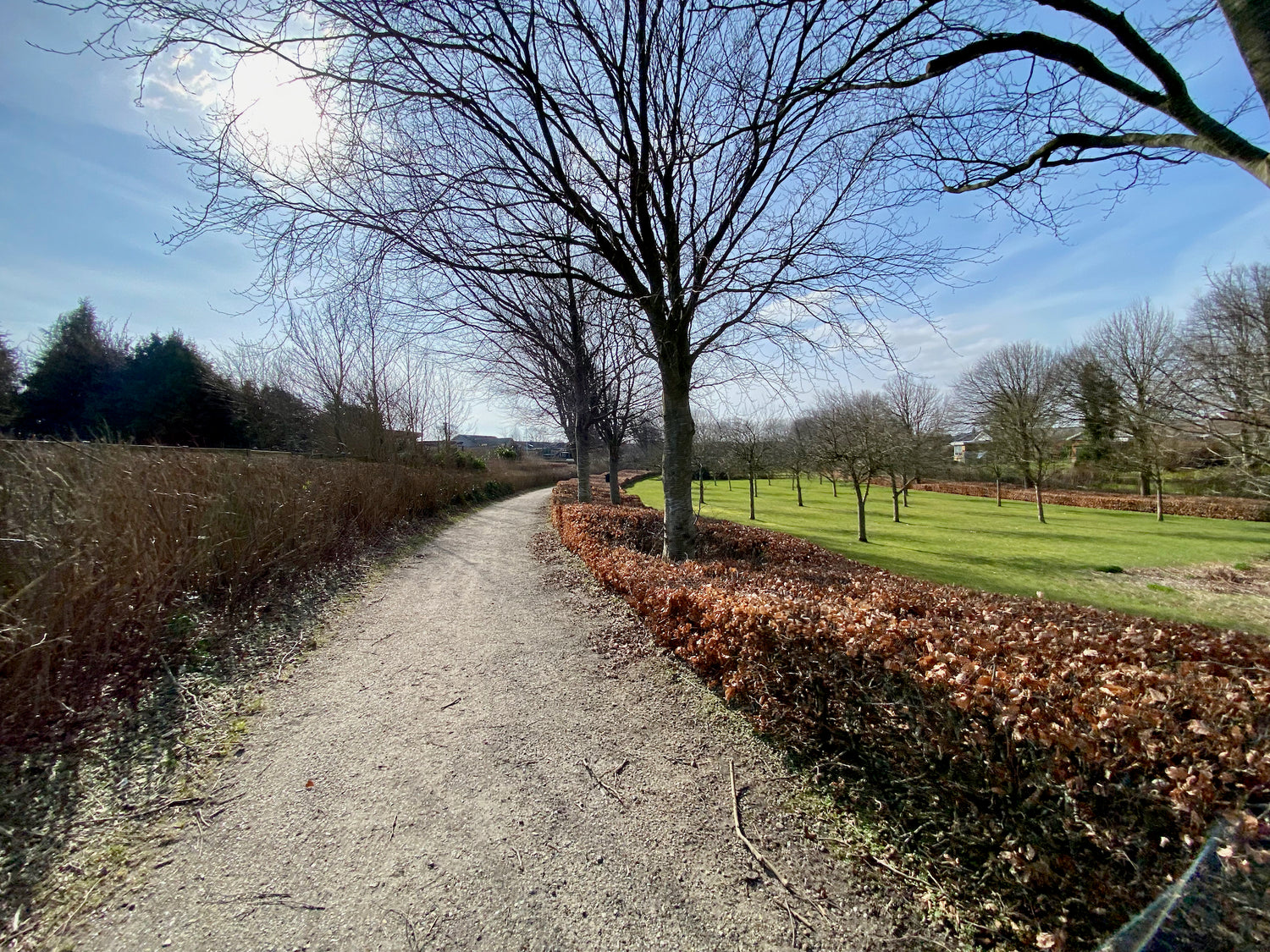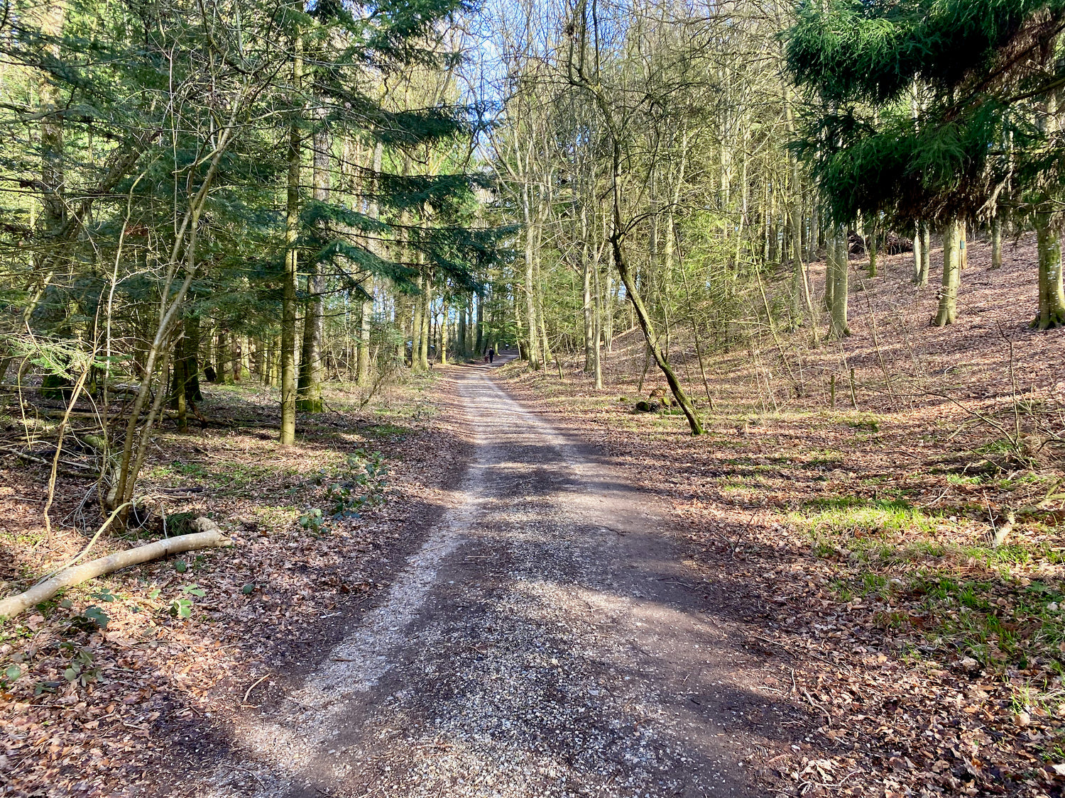 Skovstien - rød kløversti starter i et boligområde, men atmosfæren forvandles hurtigt til en fornemmelse af natur, når du går gennem en tæt beplantning af imponerende ege- og ahorntræer. Efterhånden som du fortsætter, passerer du området med flere af Thisteds uddannelsesinstitutioner og idrætsanlægget på Lerpyttervej.