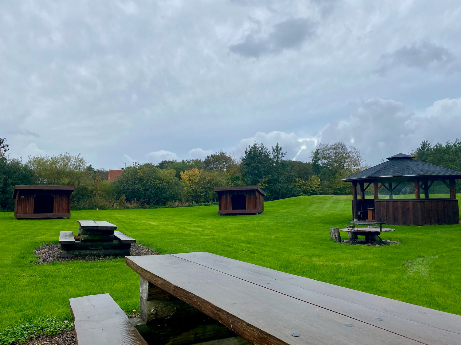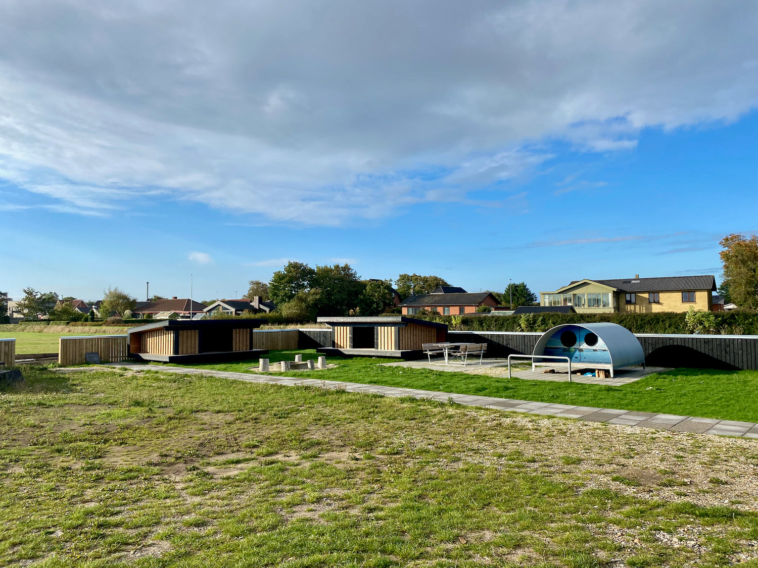 Shelterne er beliggende på en plads omkredset af træer lige ved Friskolen