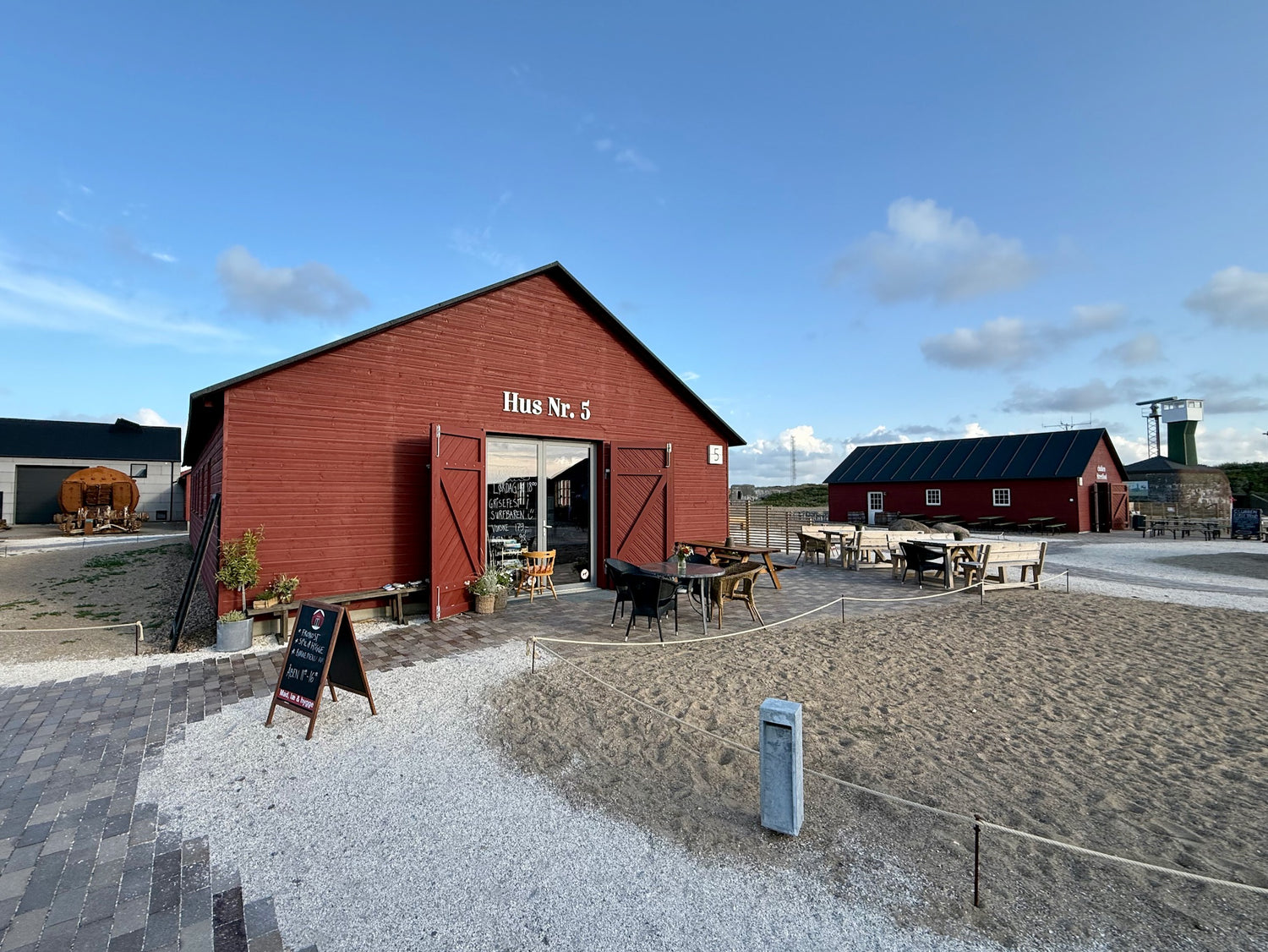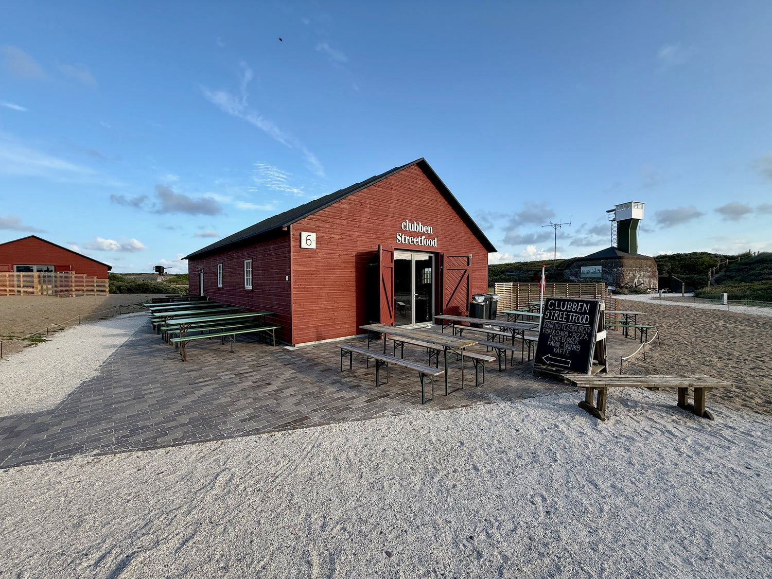 Clubben Streetfood ved Thyborøn Strand ligger i de karakteristiske “Røde Huse” tæt ved kysten og inviterer til afslappet samvær i rustikke, maritime rammer.